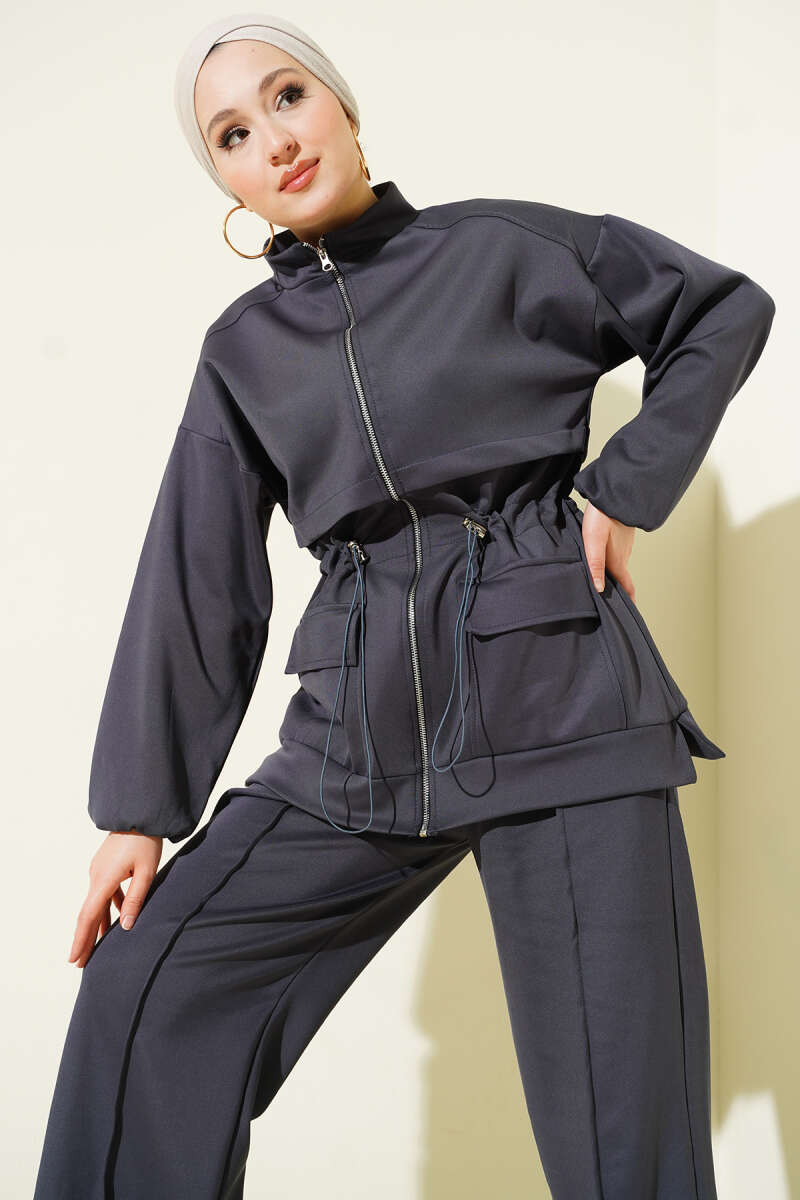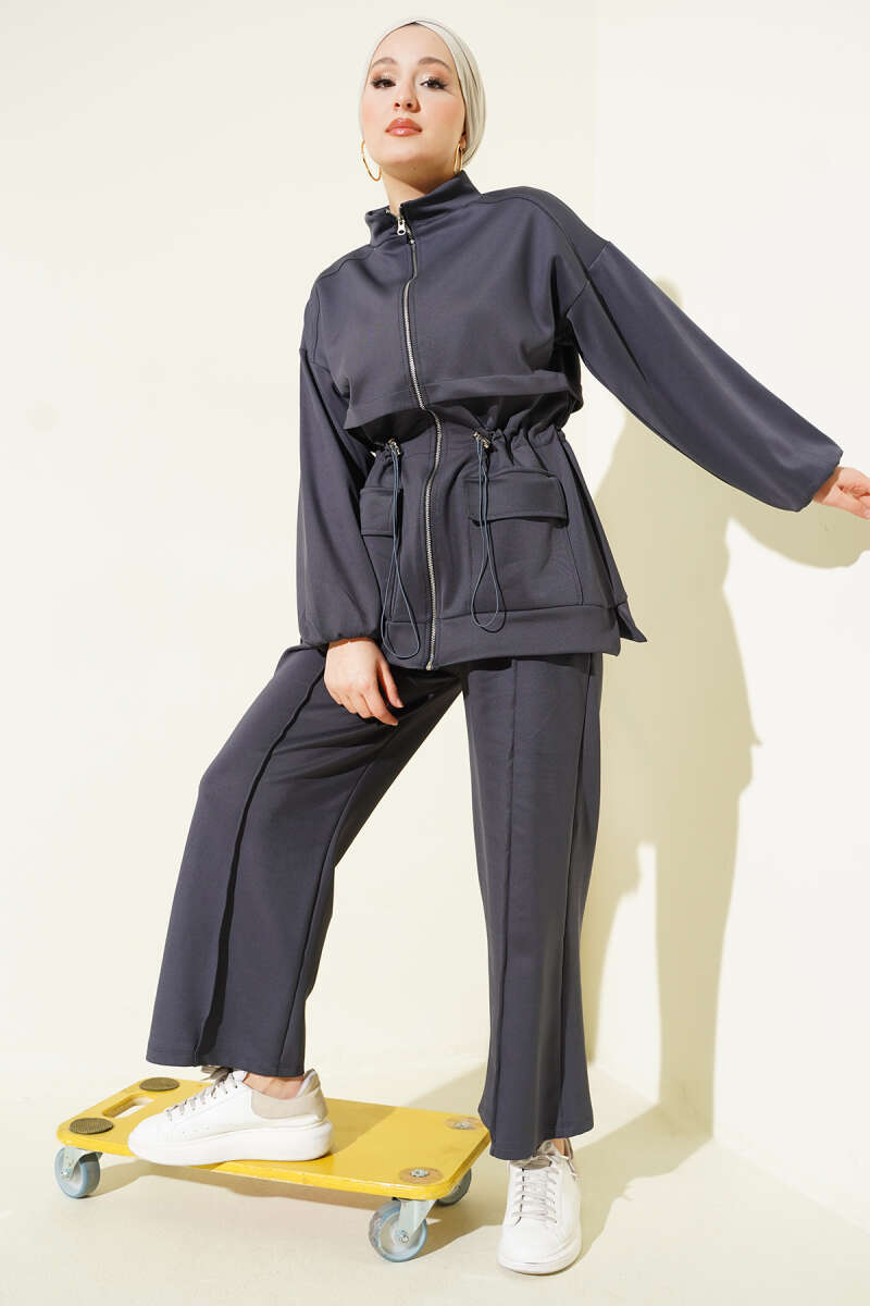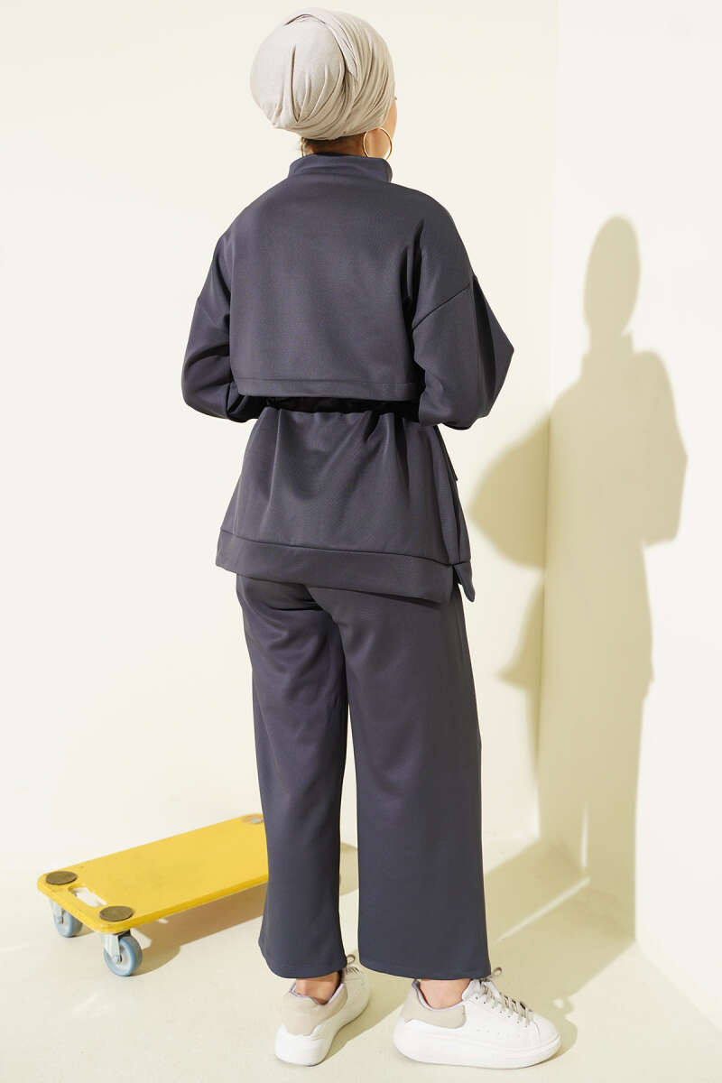 مجموعة سيبا ثنائية القطعة بحزام وتPocket في الرمادي