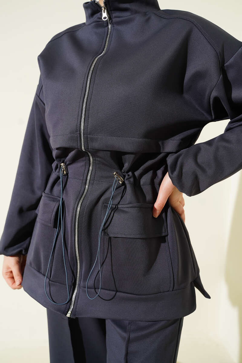 بدلة أيروبين من قطعتين مع كتاف وكارديجان طويل باللون النيلي