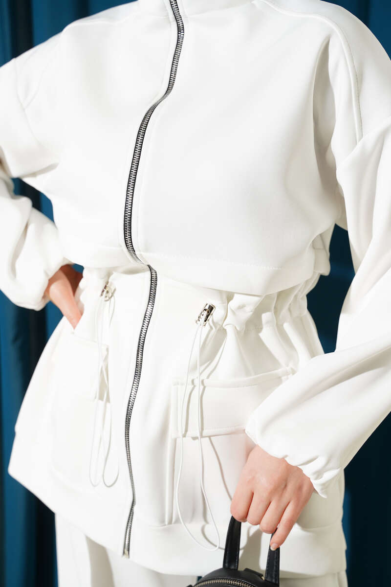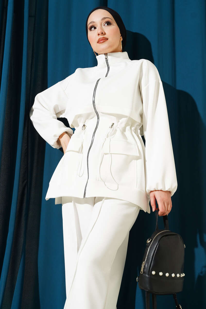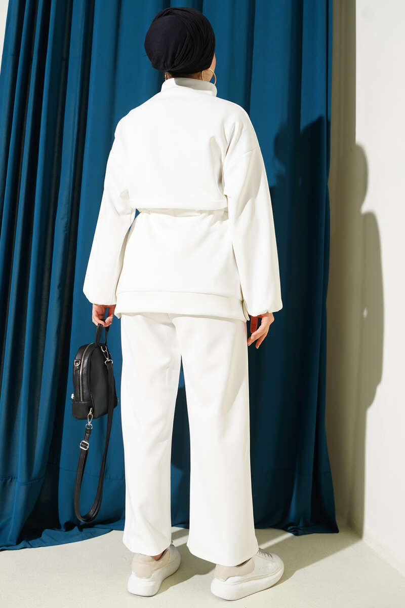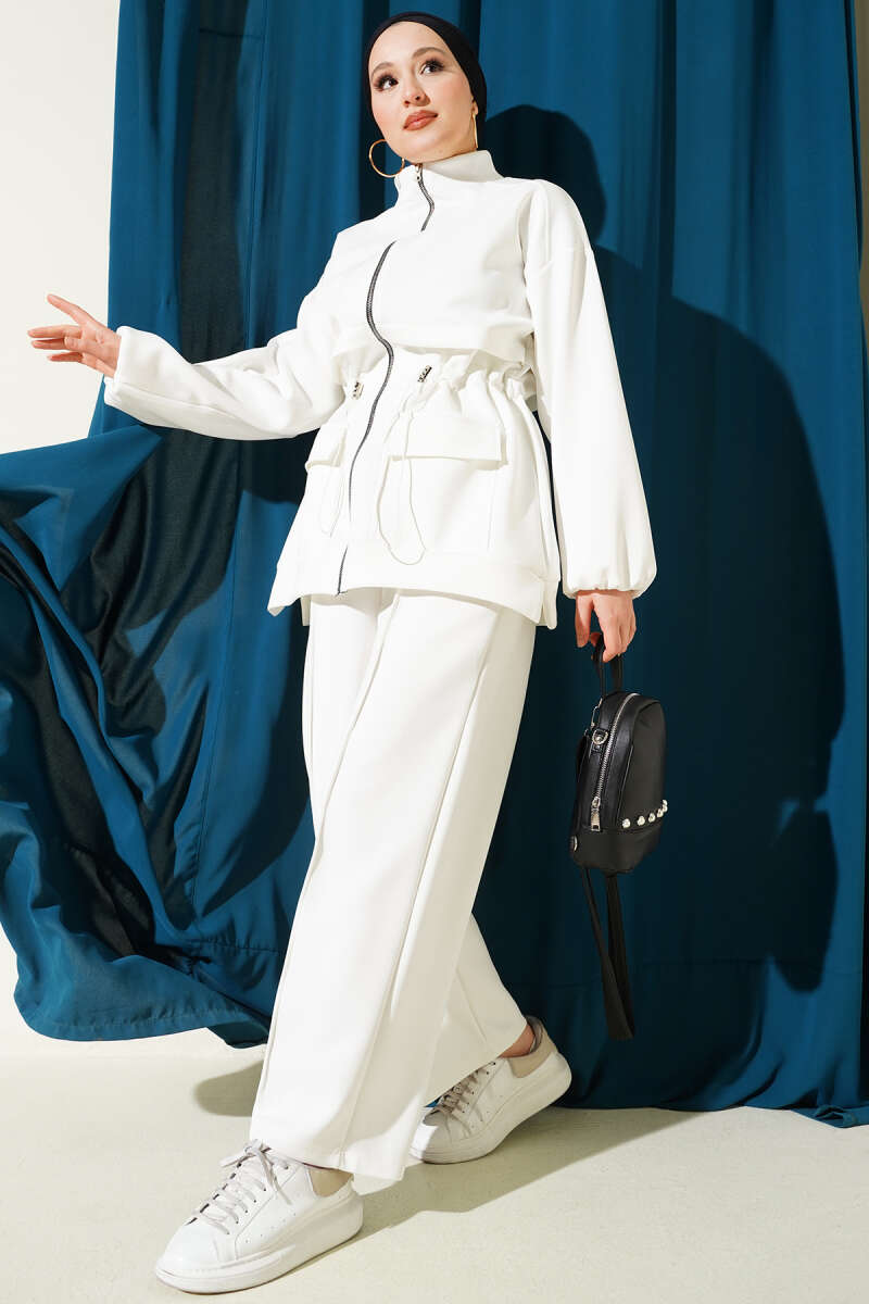 طقم من قطعتين بغطاء رأس وأرجل مرنة باللون الأبيض