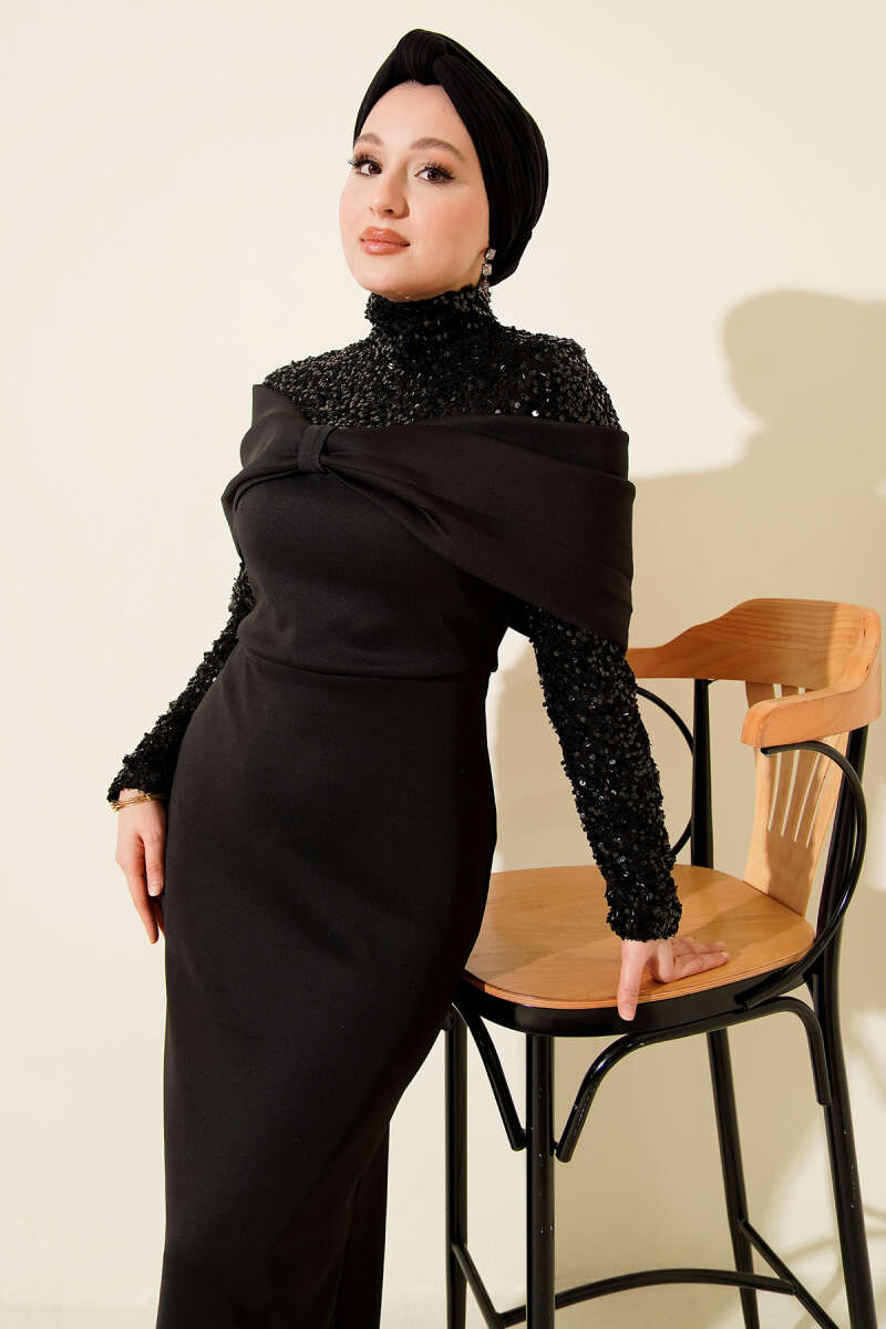 تونيك بلون اللاتيه مع وشاح على الكتف