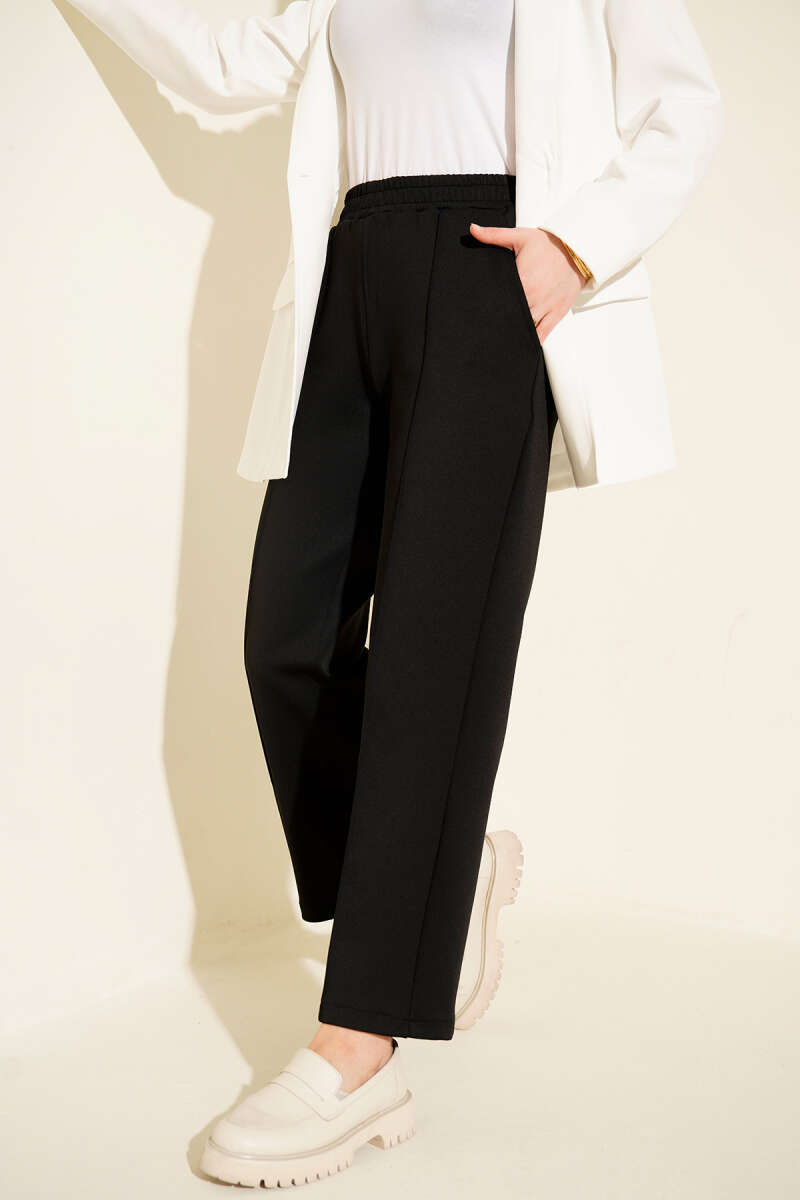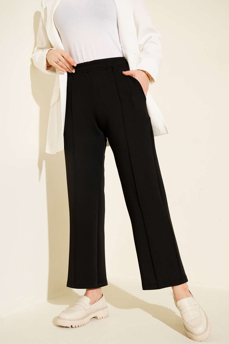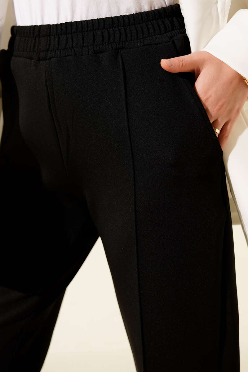 بنطال سكوبا أسود مع حزام مرن وجيوب