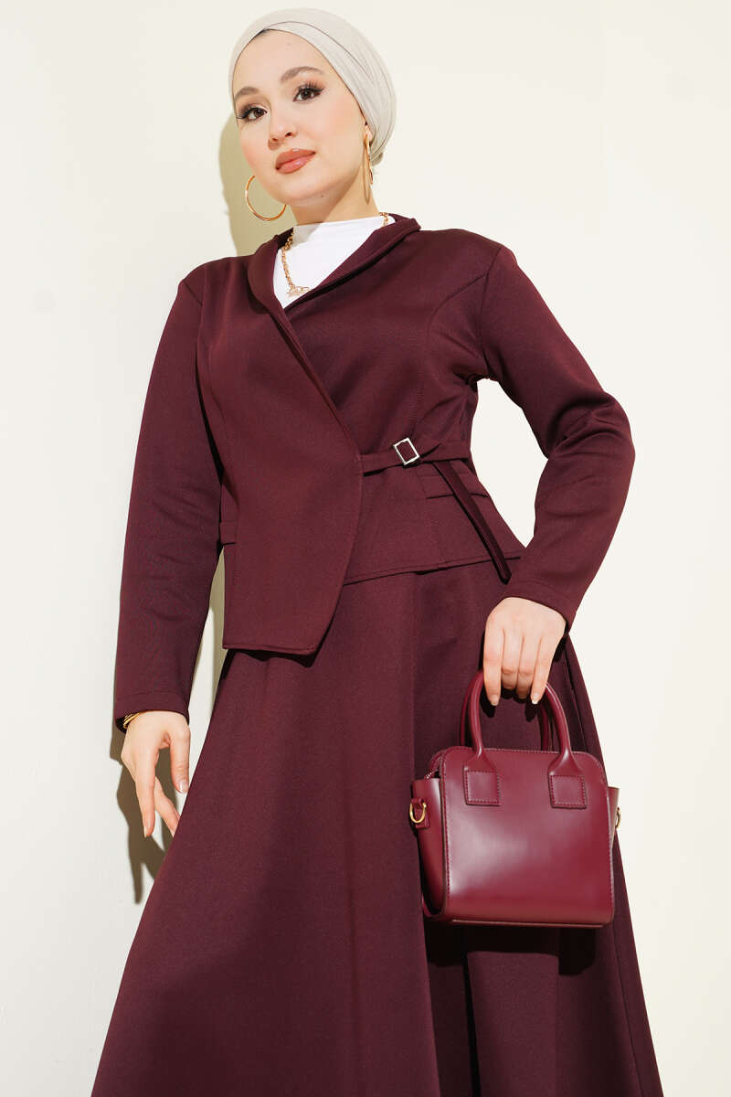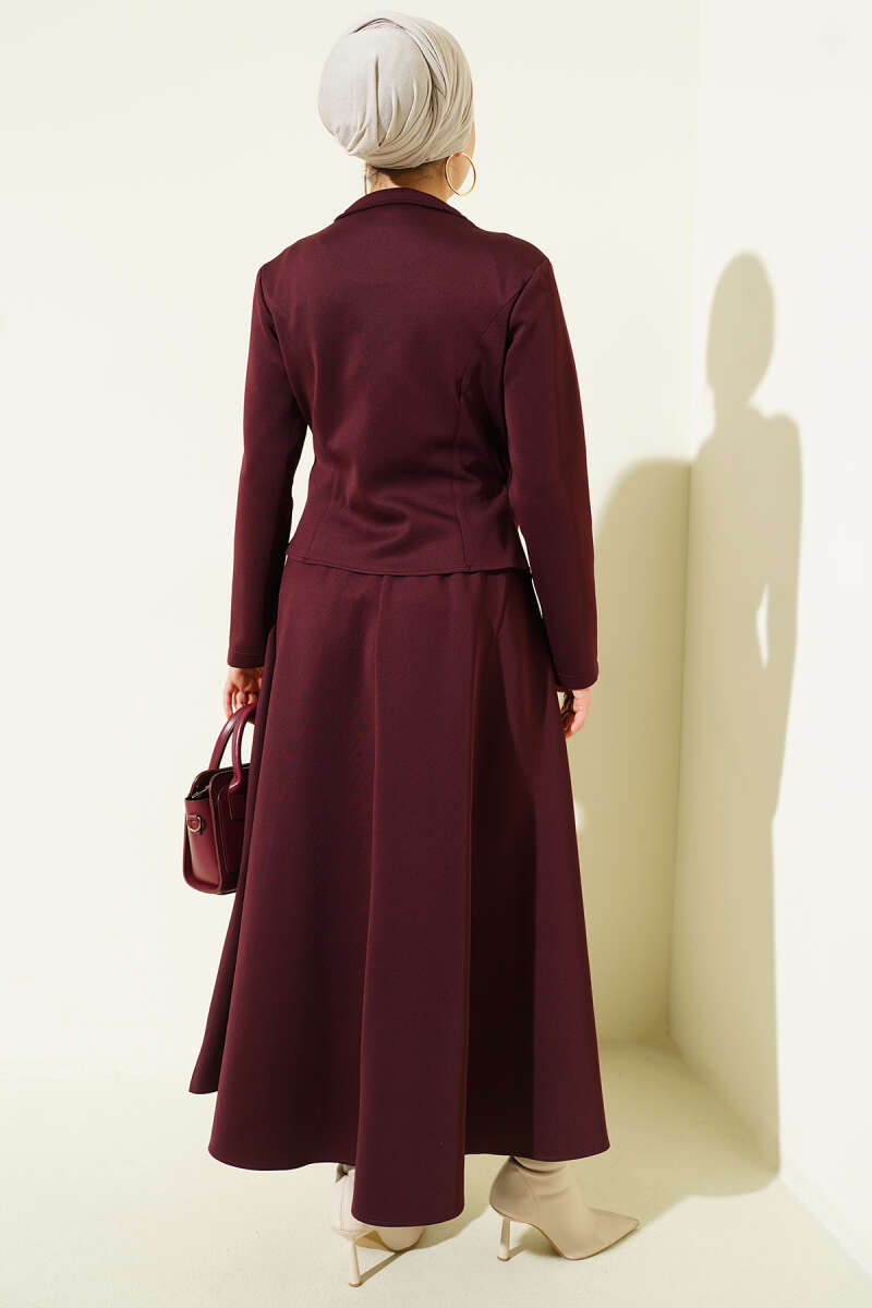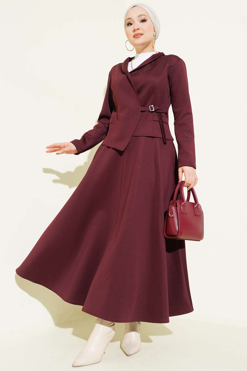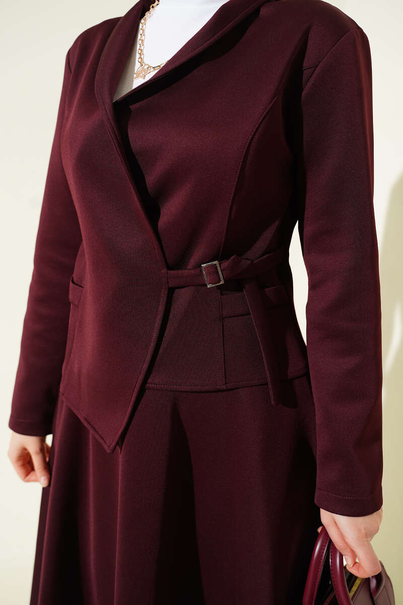 طقم ثنائي بورجوندي مع تنورة سكوبي بحبل
