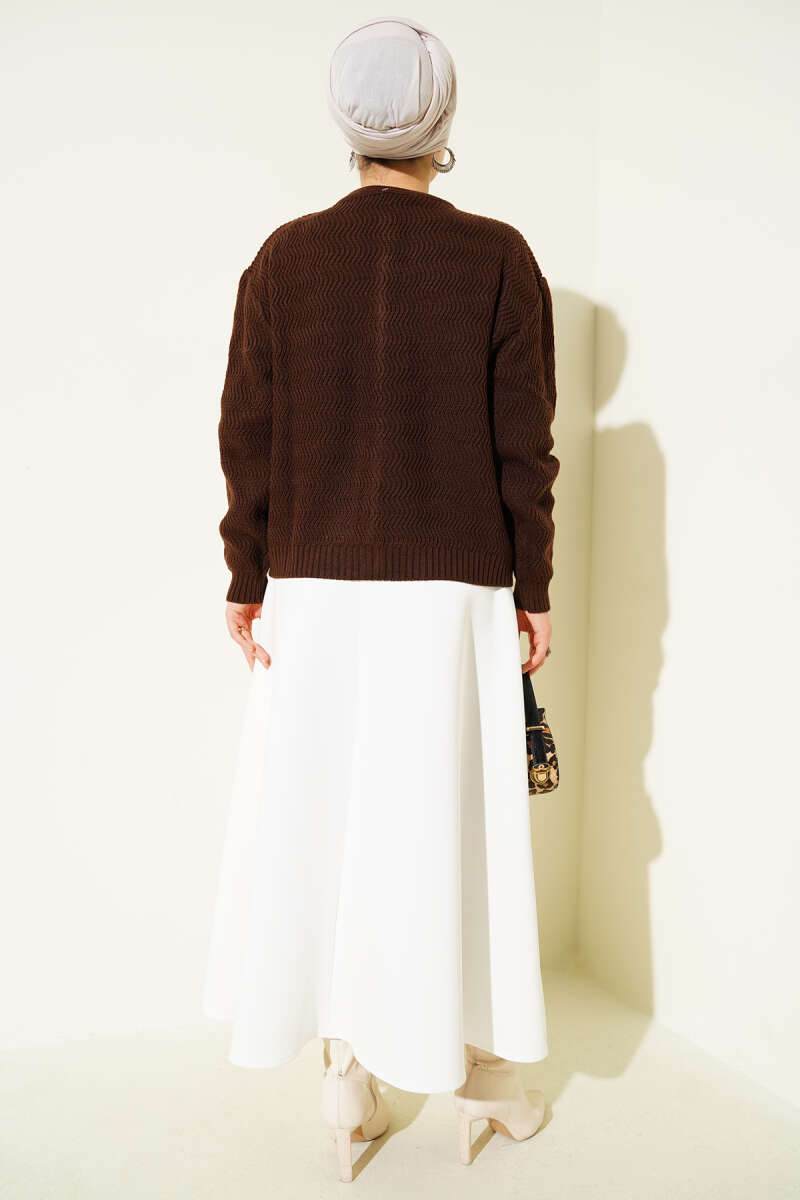 كارديجان بني مزخرف بأزرار ذهبية ونمط زيغ زاغ