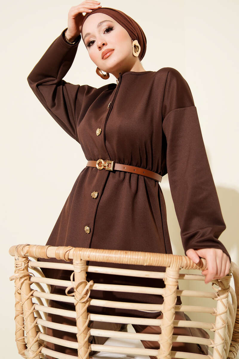 تونيك مكشكش بحزام من قطعتين مرصع بالأحجار