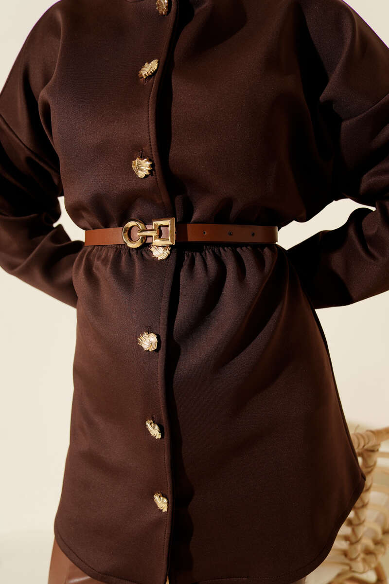 جاكيت سكوبر بني بحزام وتفاصيل مجمعة