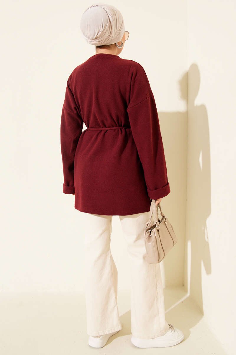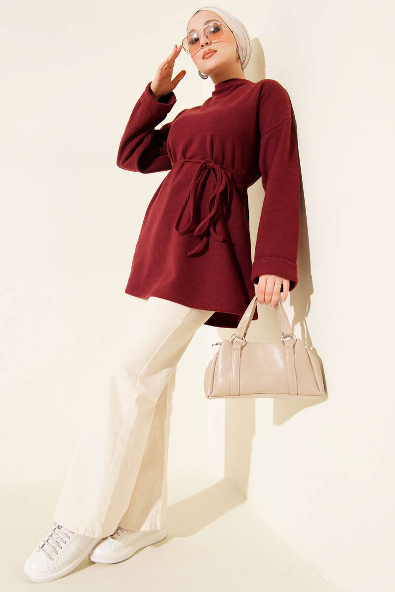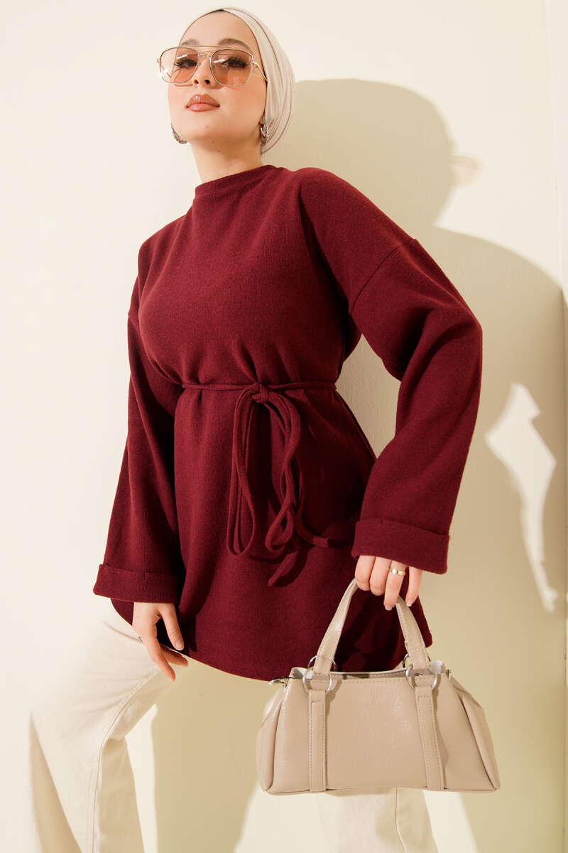 تونك بوردو برقبة دراجة مع تفاصيل رباط
