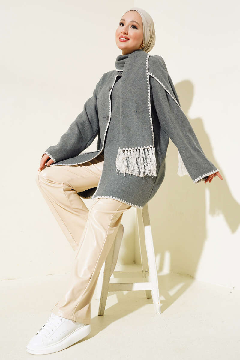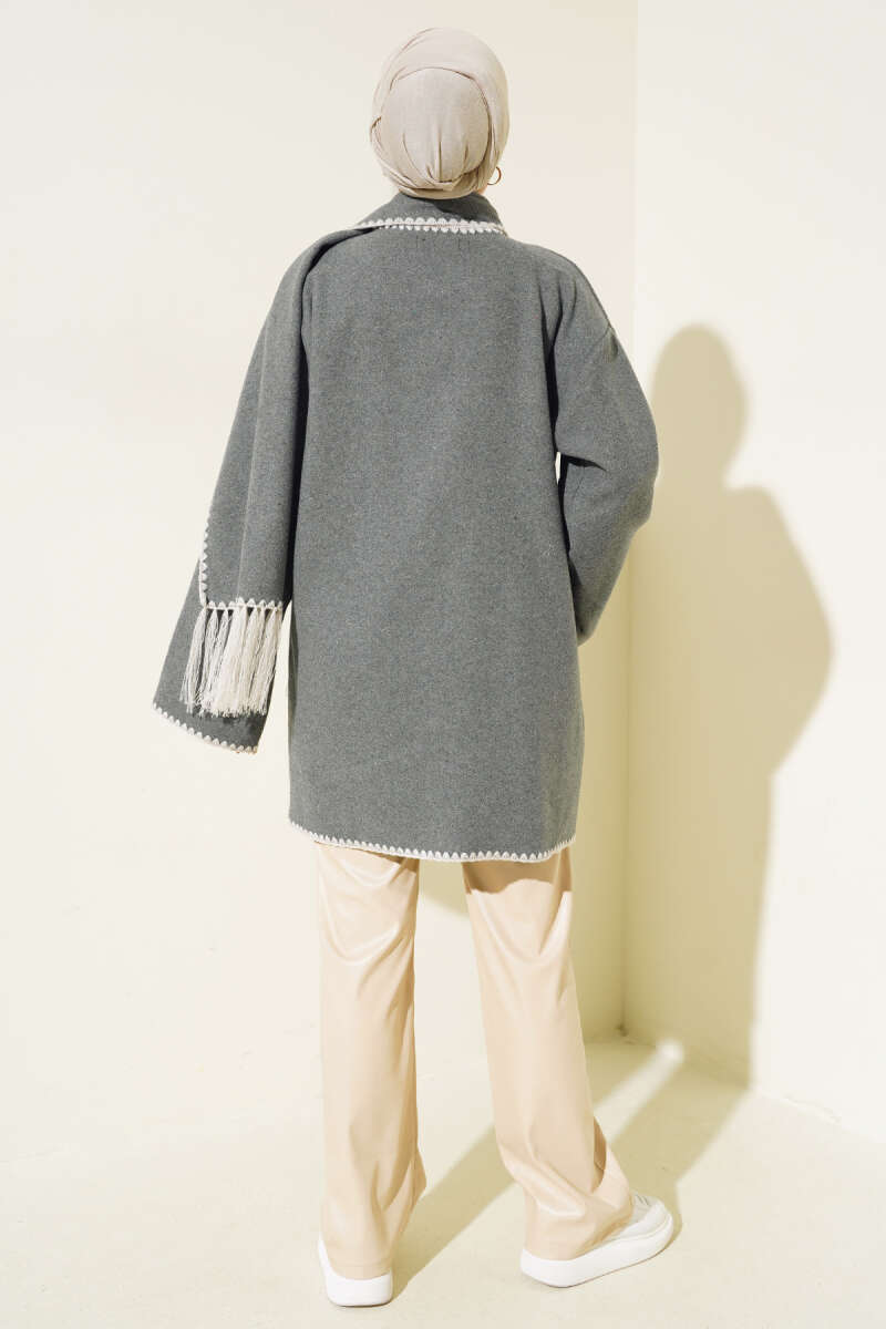 تونيك بلون اللاتيه مع وشاح على الكتف
