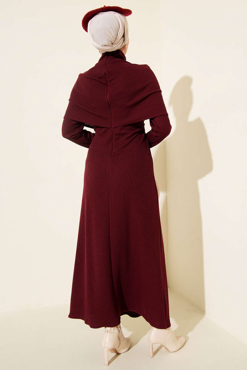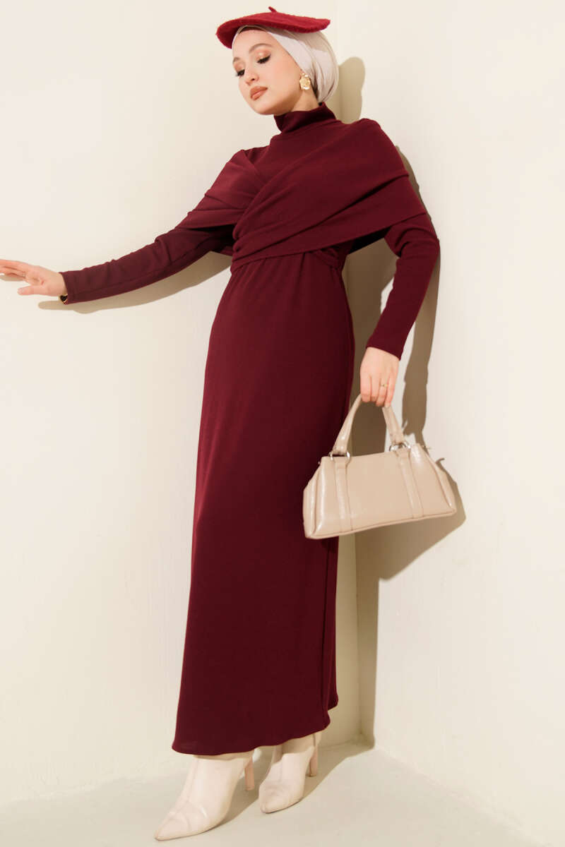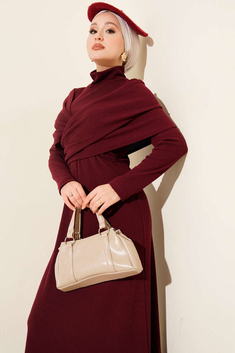 فستان مضغوط بتصميم عرضي باللون النبيذي