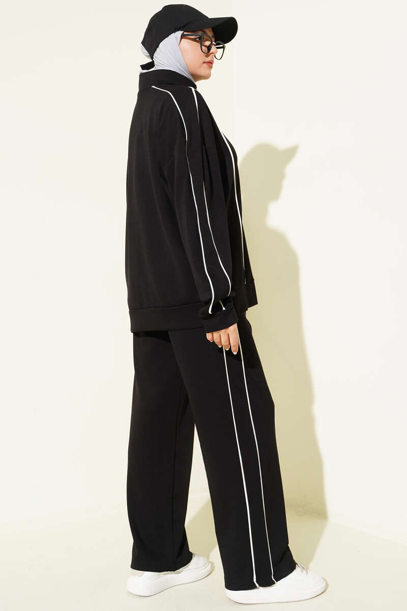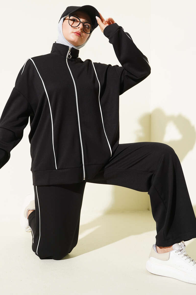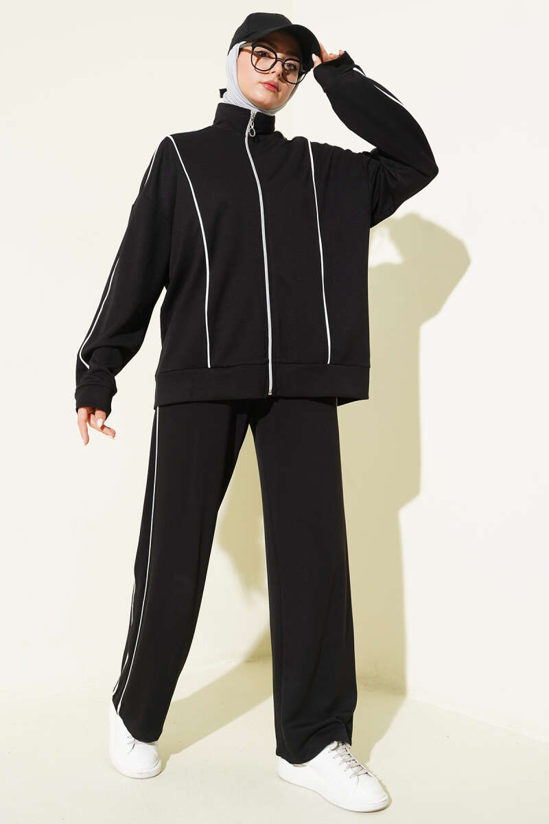 طقم ثنائي مفصل بسحاب باللون الأسود
