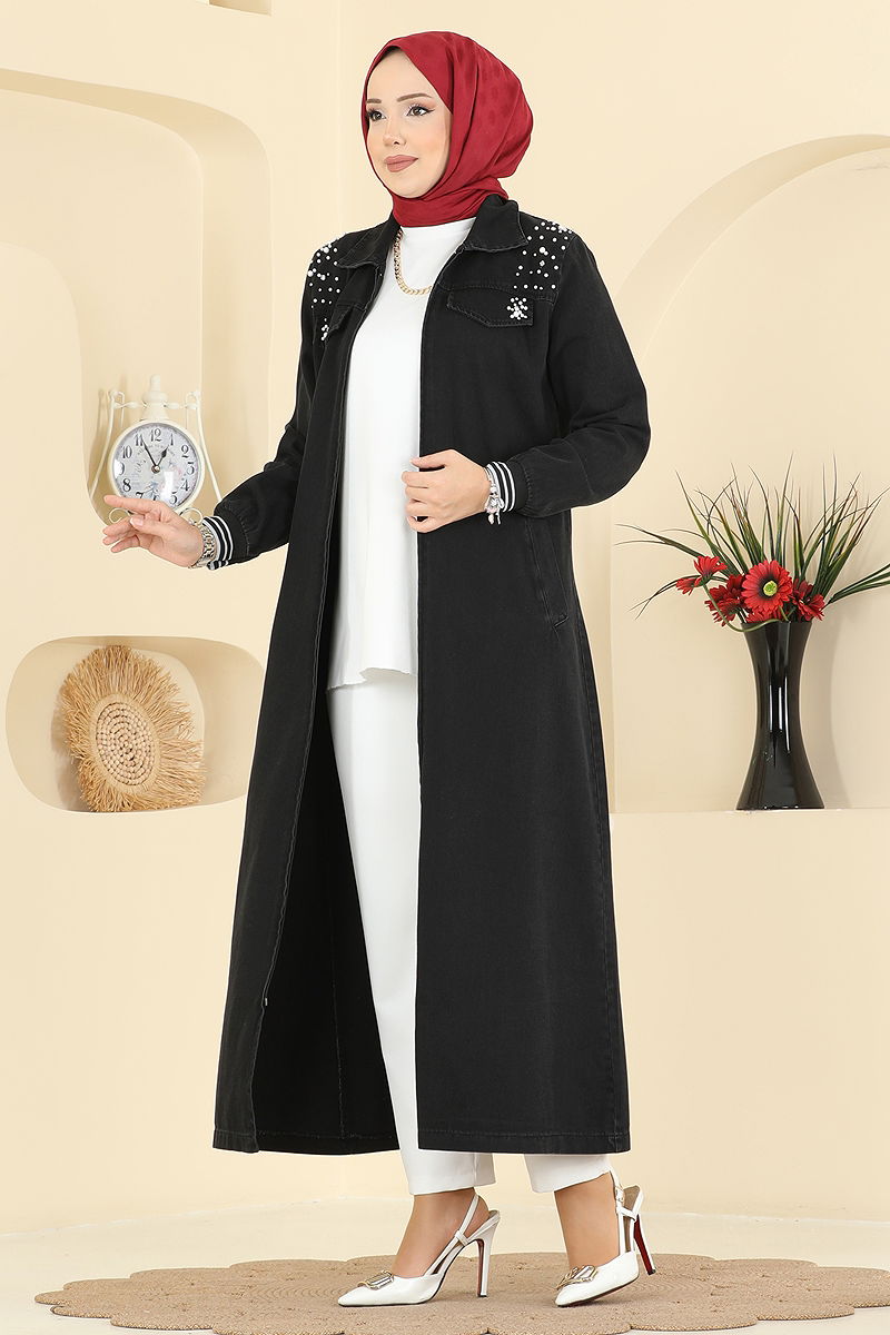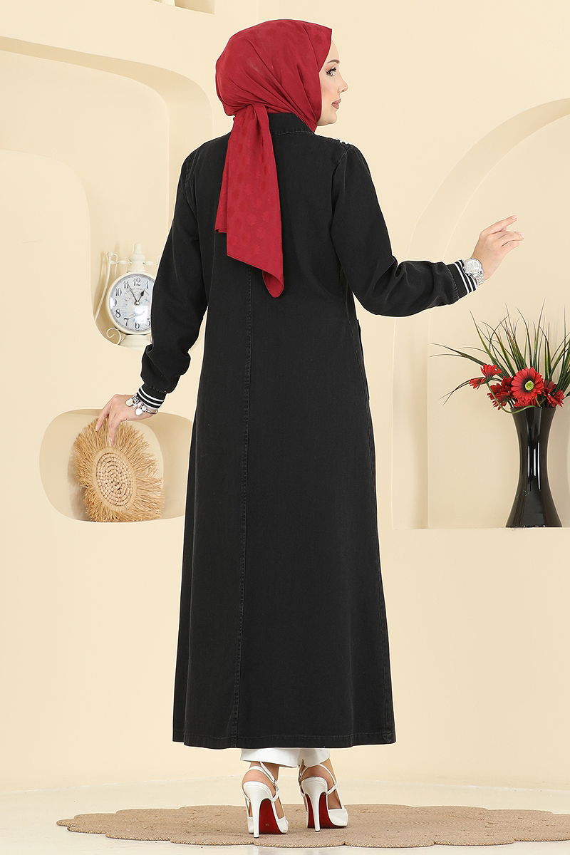 فستان كتان مزخرف - دينيم أسود