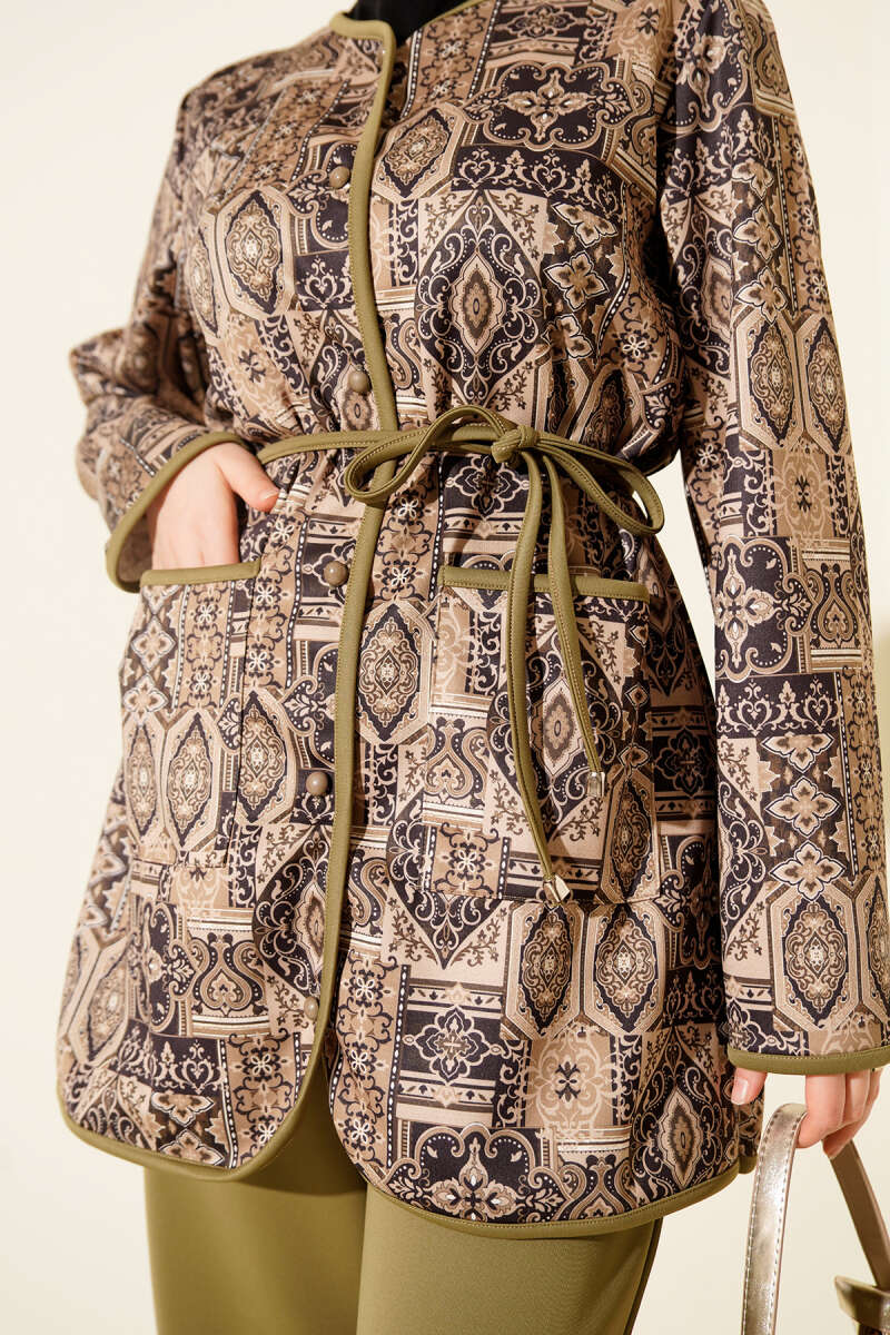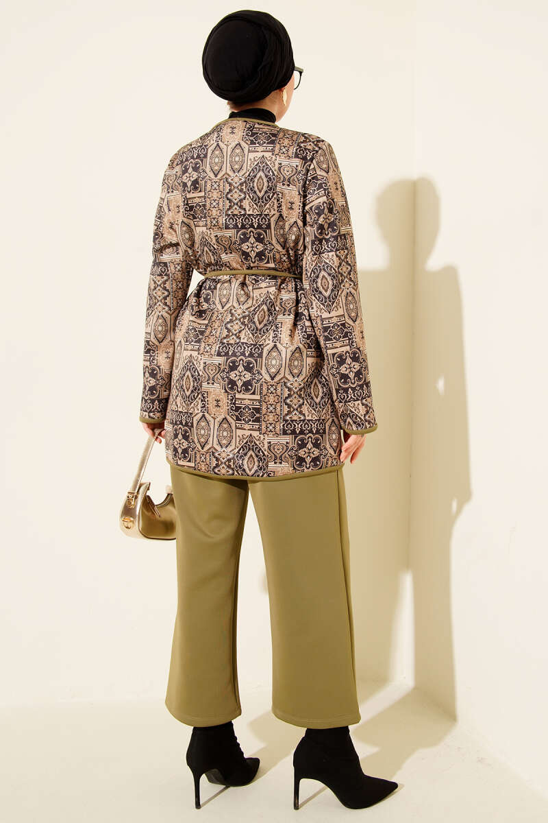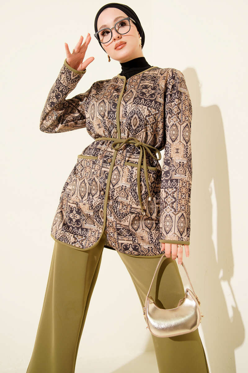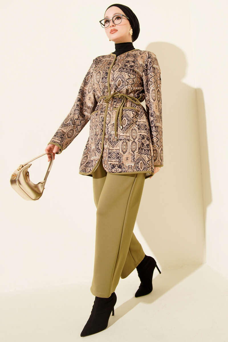 طقم ذو خيوط سحب بنمط عرقي باللون الكاكي