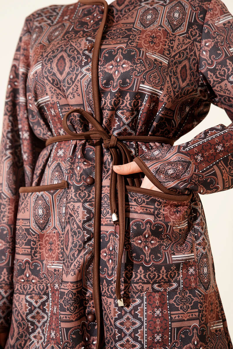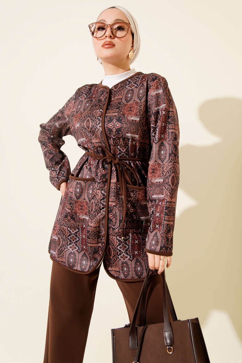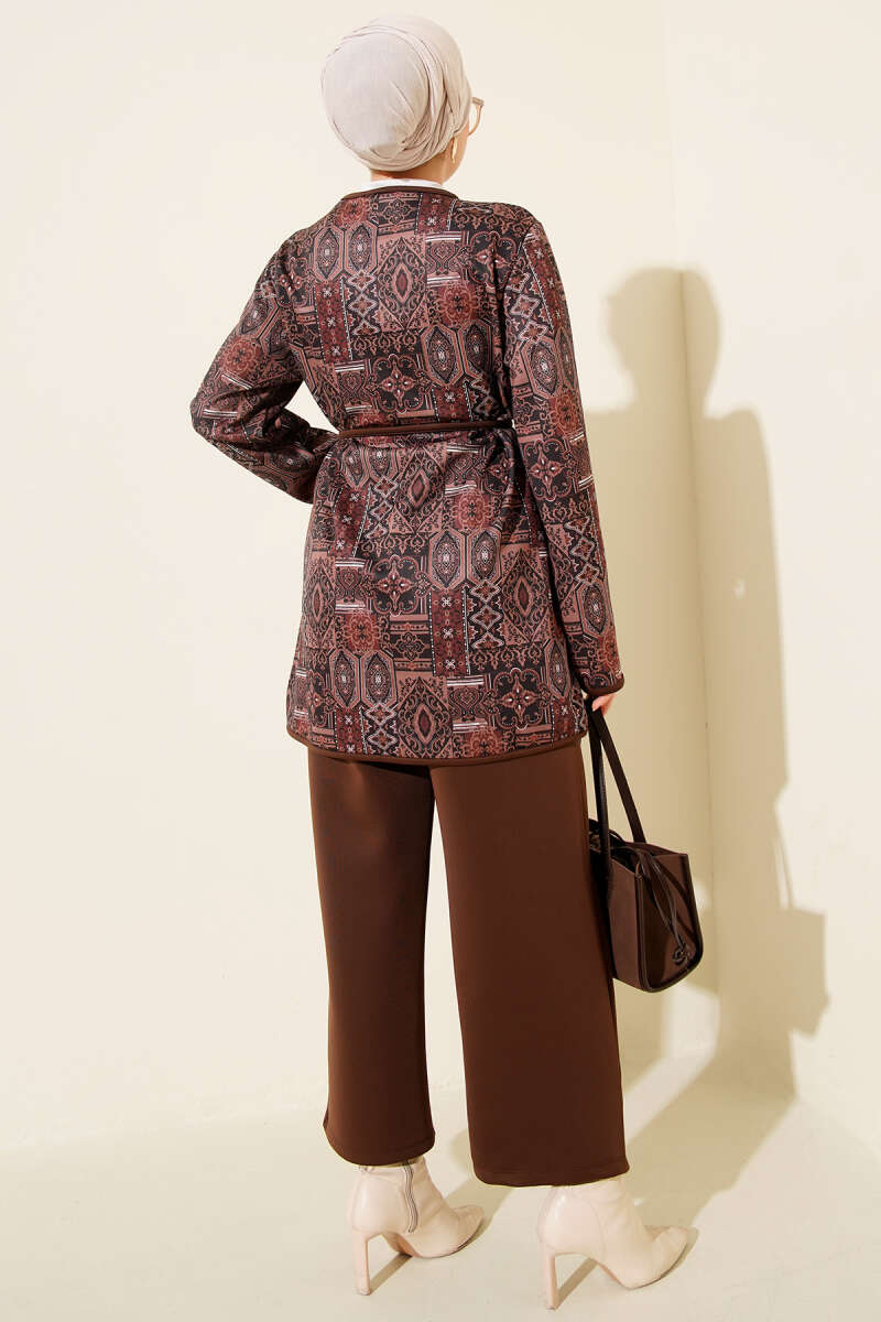 طقم ثنائي بلون بني مع حبل ربط بتصميم عرقي