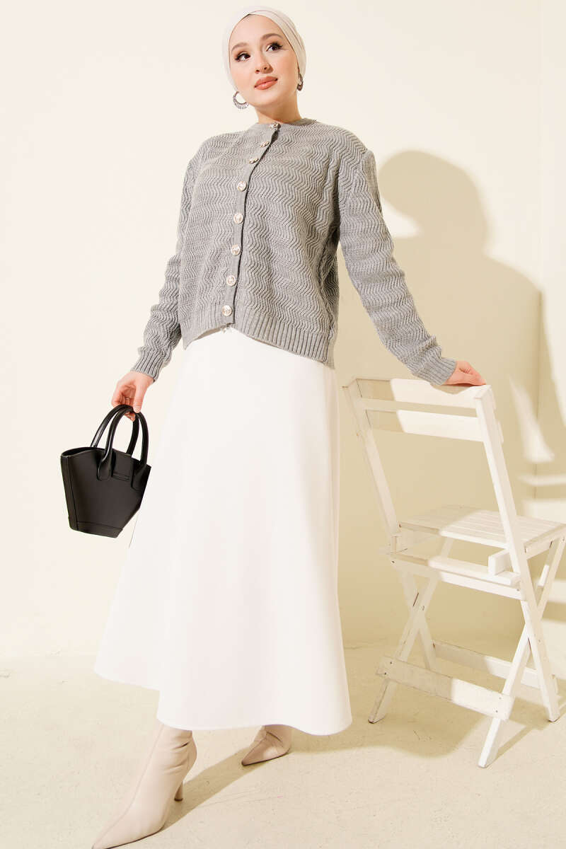 كارديغان صوفي رمادي مزود بأزرار ذهبية ونمط متعرج