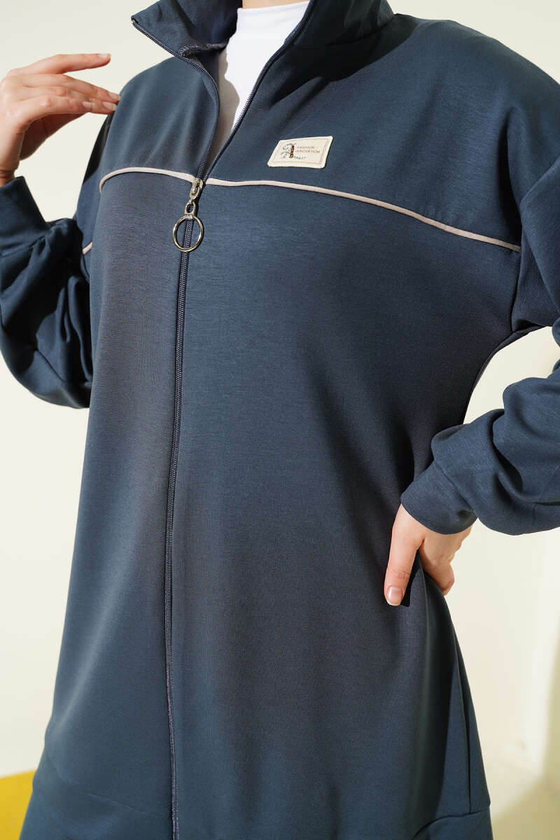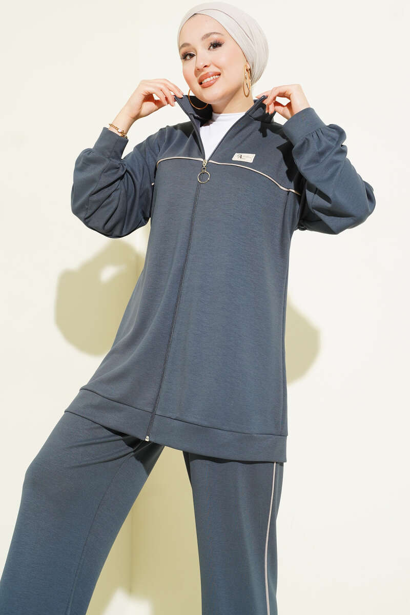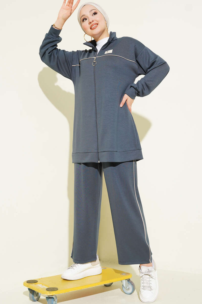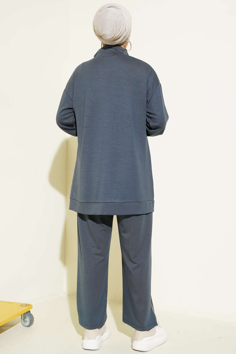بدلة أيروبين من قطعتين مع كتاف وكارديجان طويل باللون النيلي