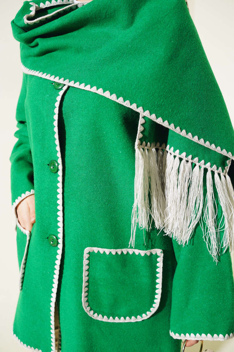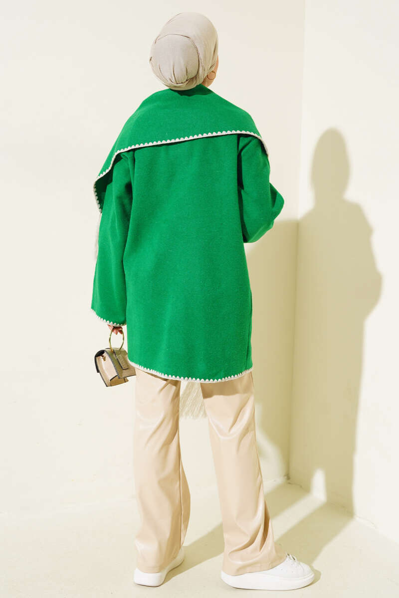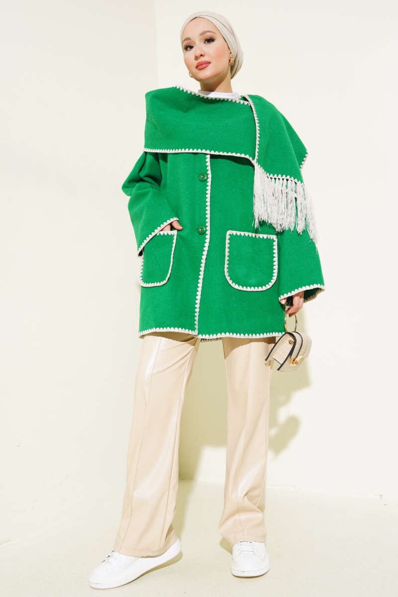 جاكيت أخضر مزود بوشاح وبتفاصيل مخيطة