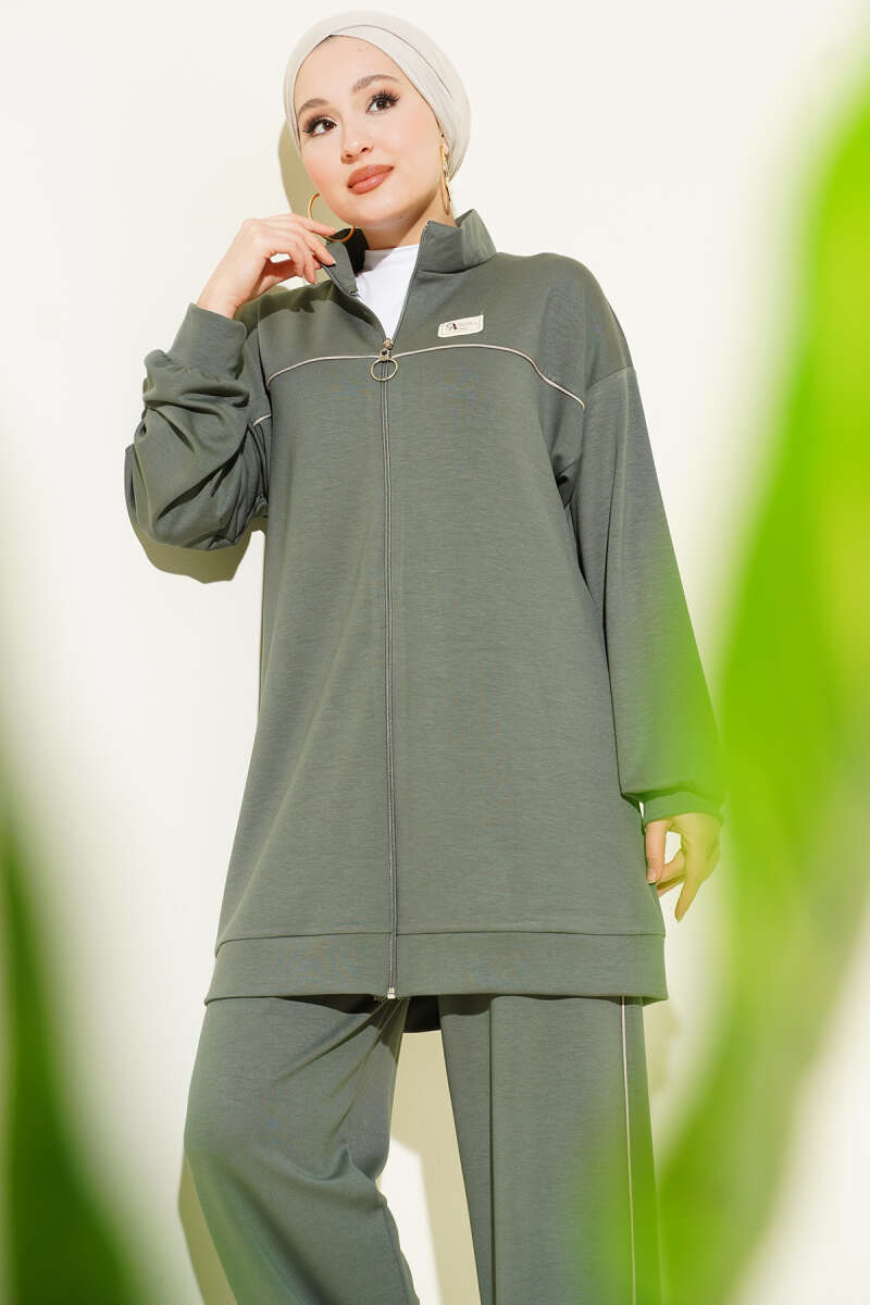 طقم ثنائي باللون الحاكي مع شعار مخيط