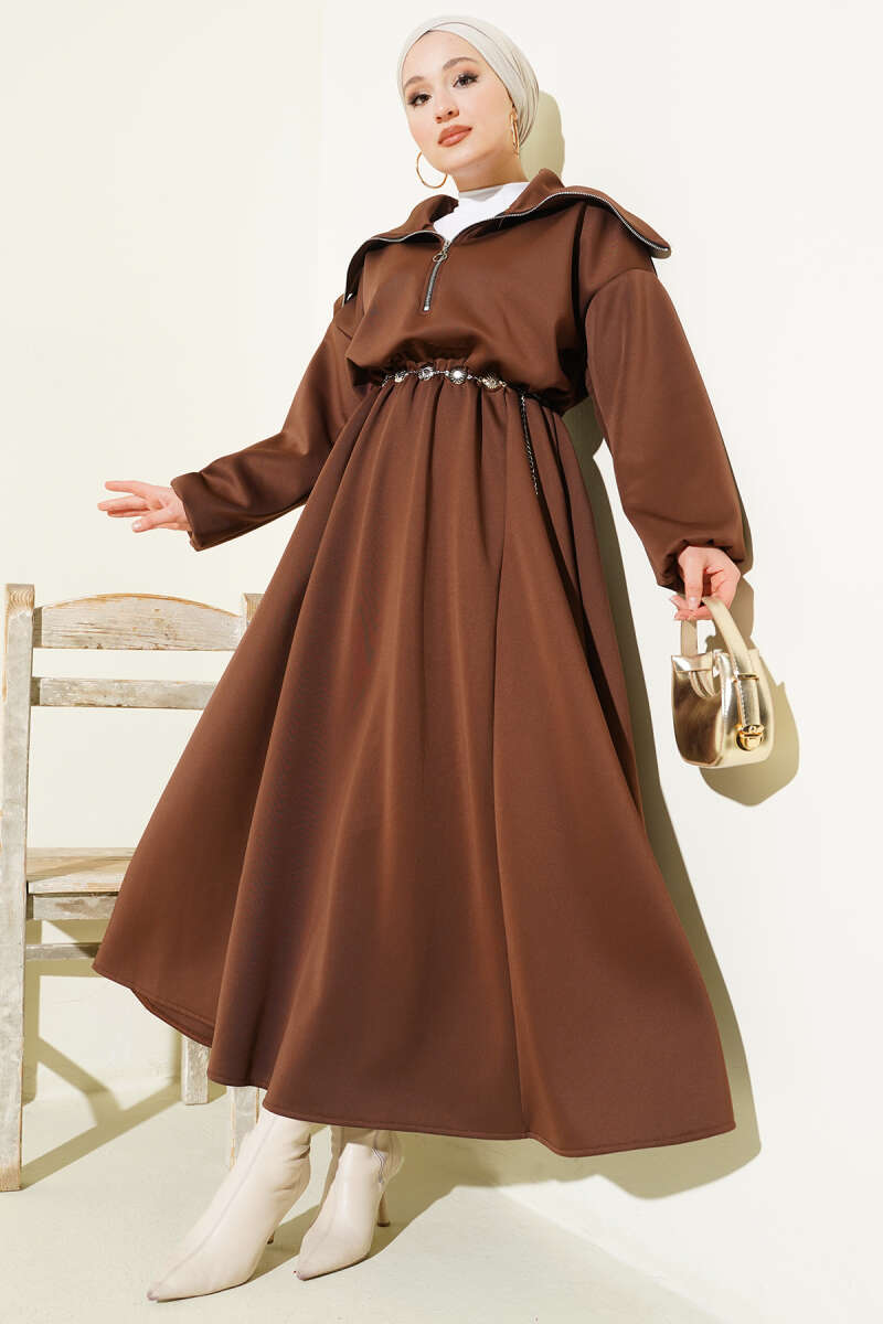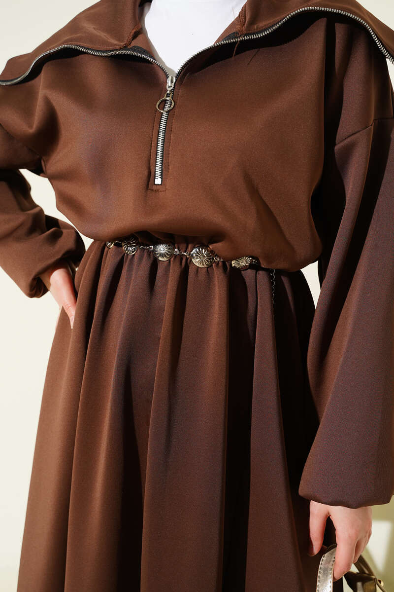 تونيك مكشكش بحزام من قطعتين مرصع بالأحجار