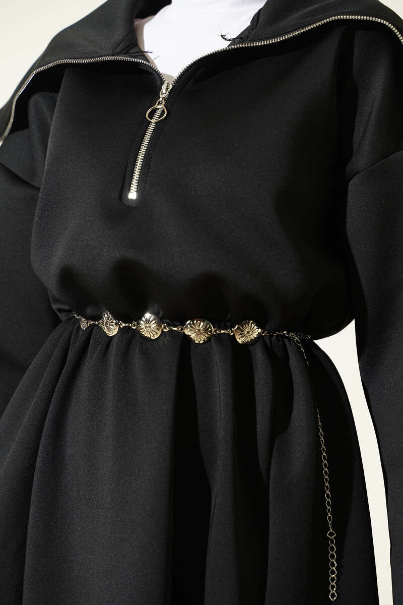فستان سكوبر بسحاب نصف رقبة - أسود