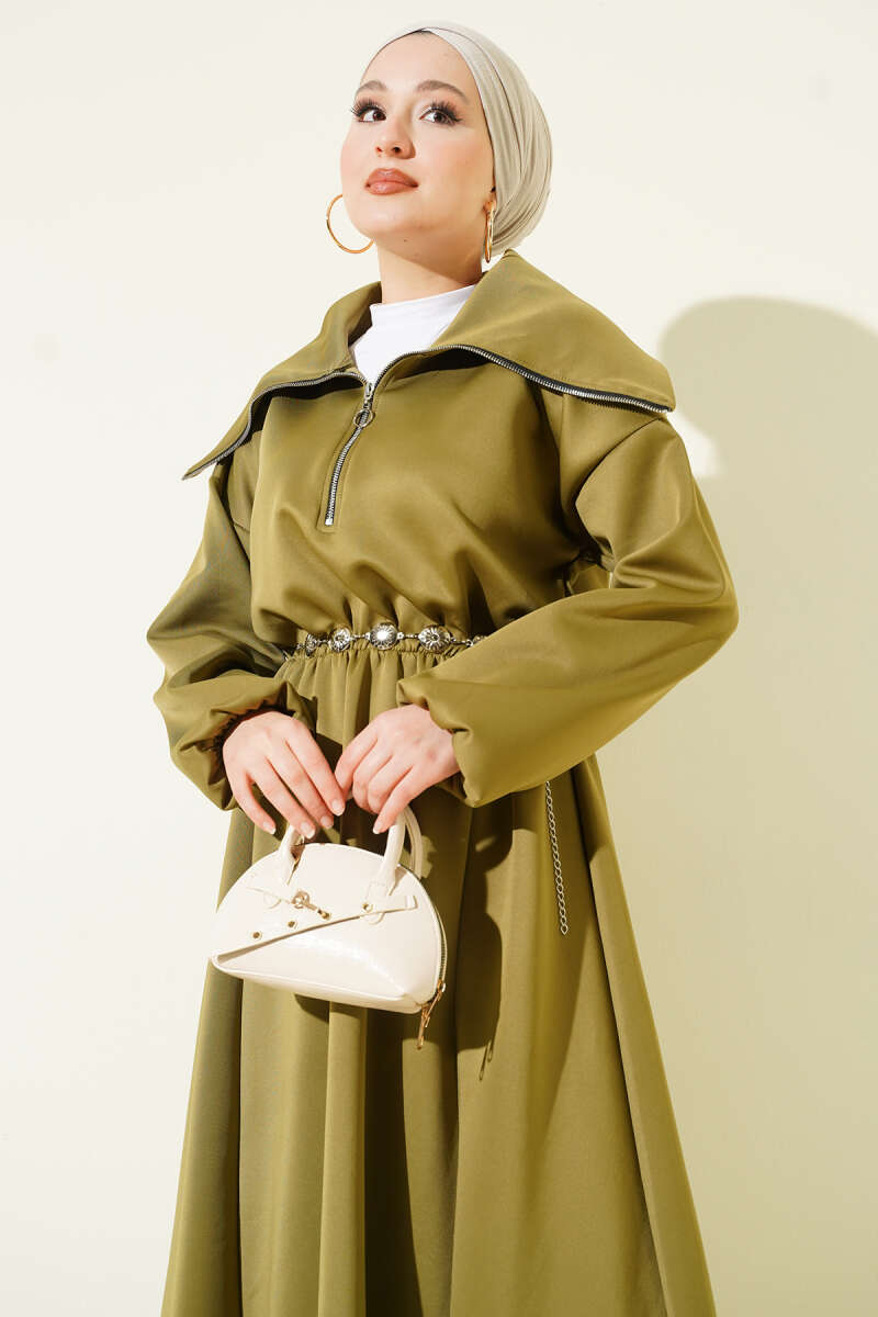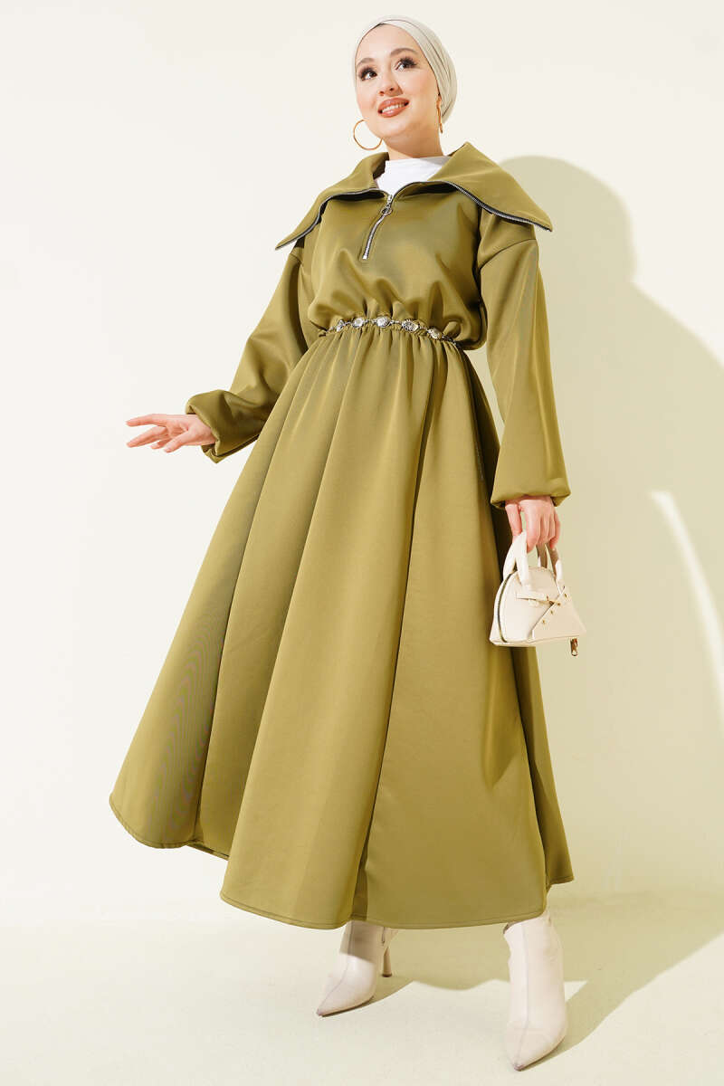 فستان سكوبي نصف ياقة مزود بسحاب باللون الكاكي