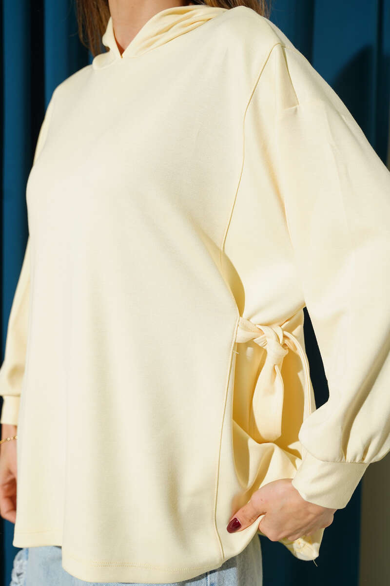 سويت شيرت بغطاء رأس ورباط جانبي باللون الأصفر