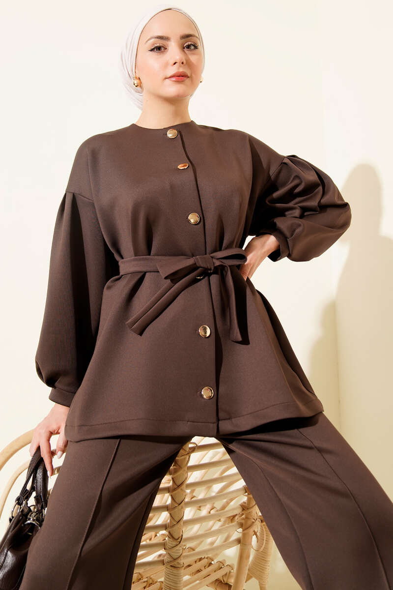 طقم ثنائي برباط بزنل معدني بلون القهوة