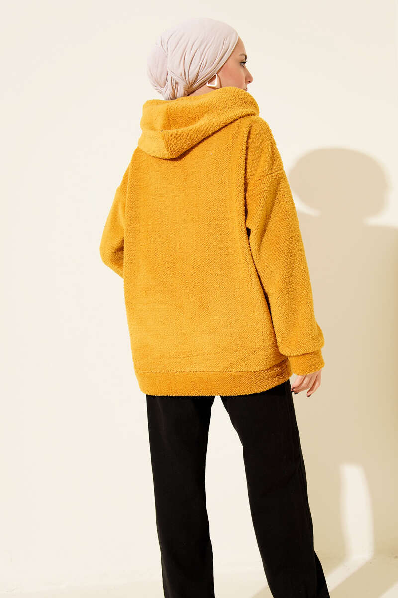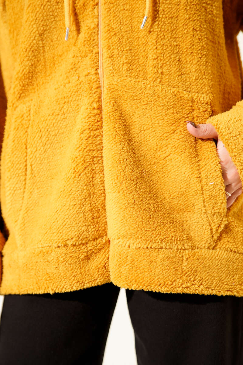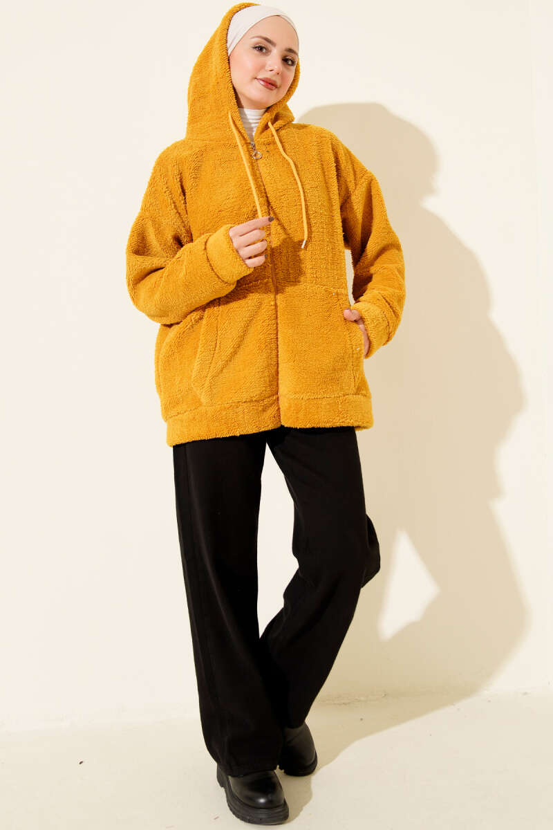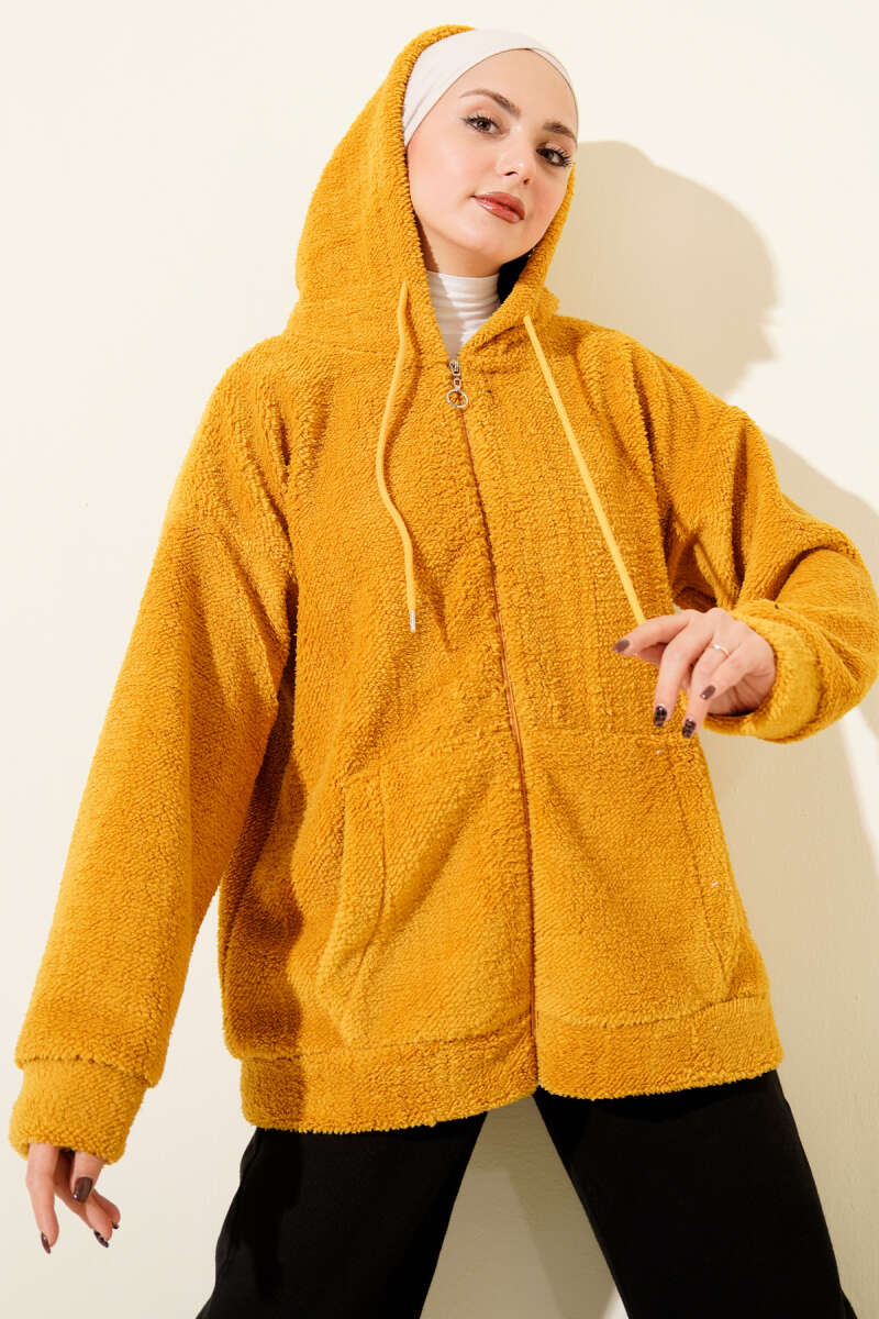 جاكيت بلسه مزود بغطاء رأس وسحاب باللون الخردل