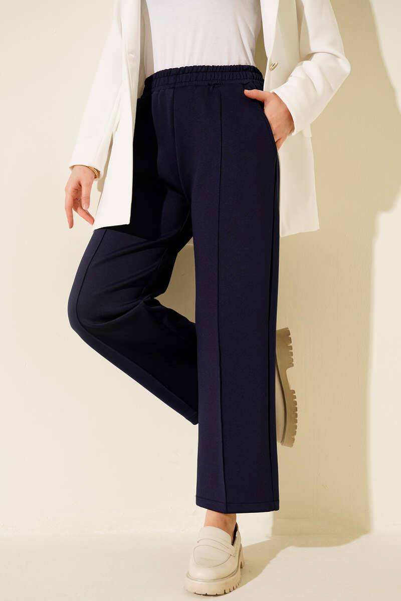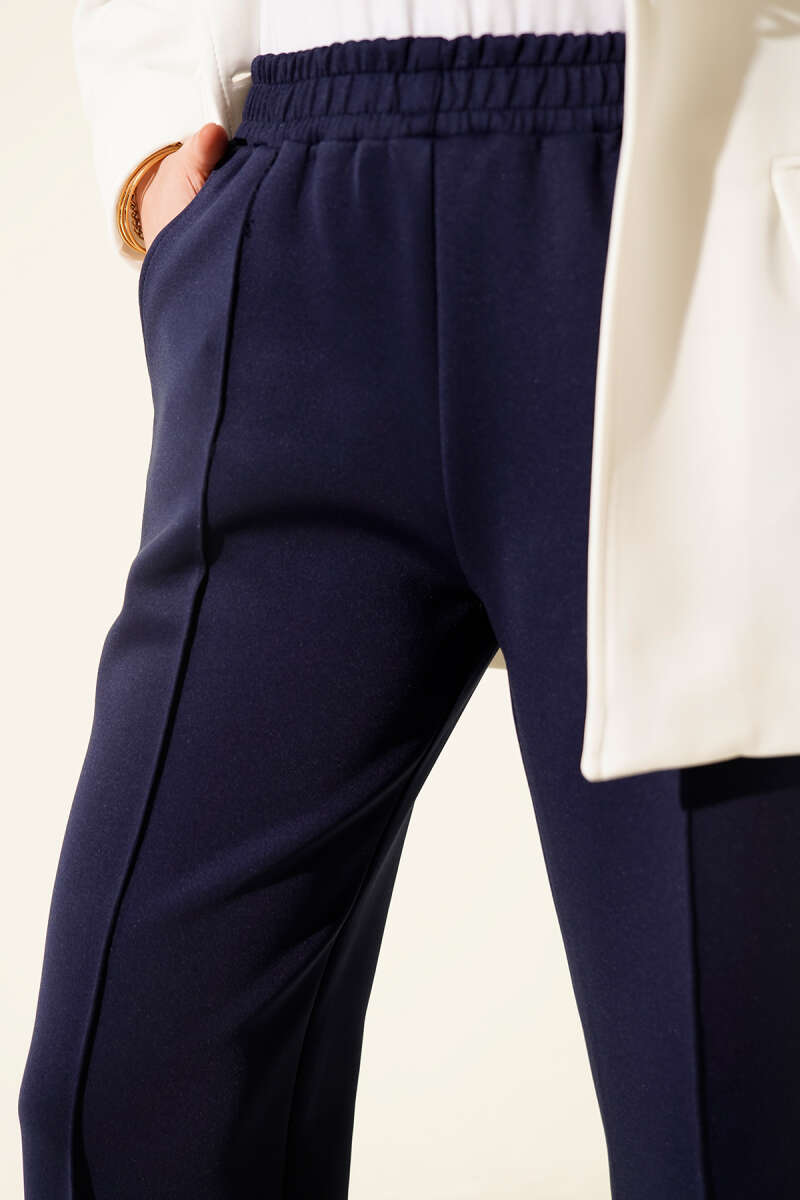 بنطال سكوبا مزود بجيوب وبخصر مرن باللون الأزرق الداكن