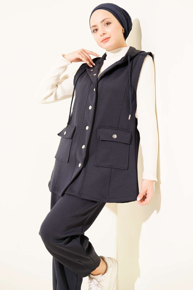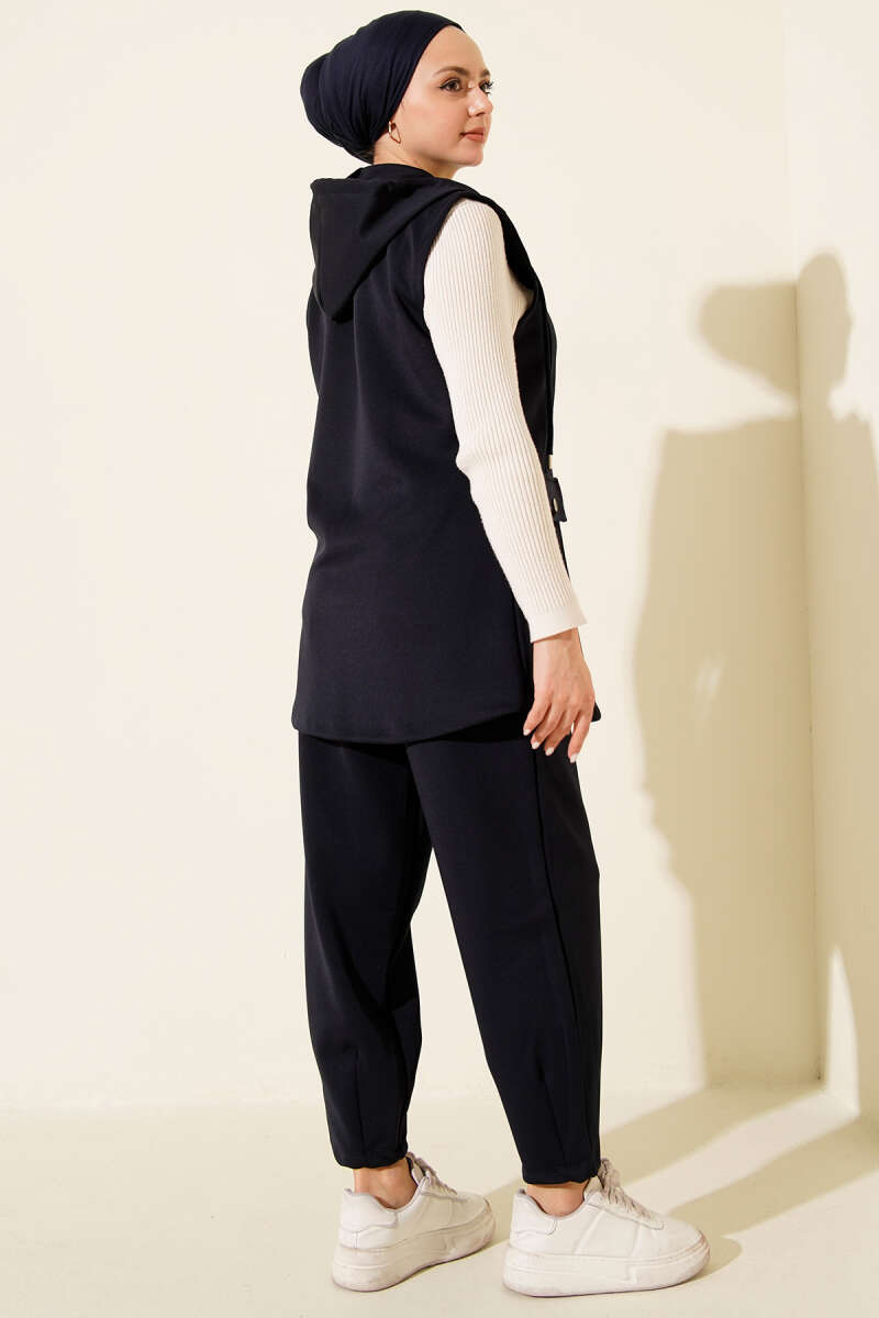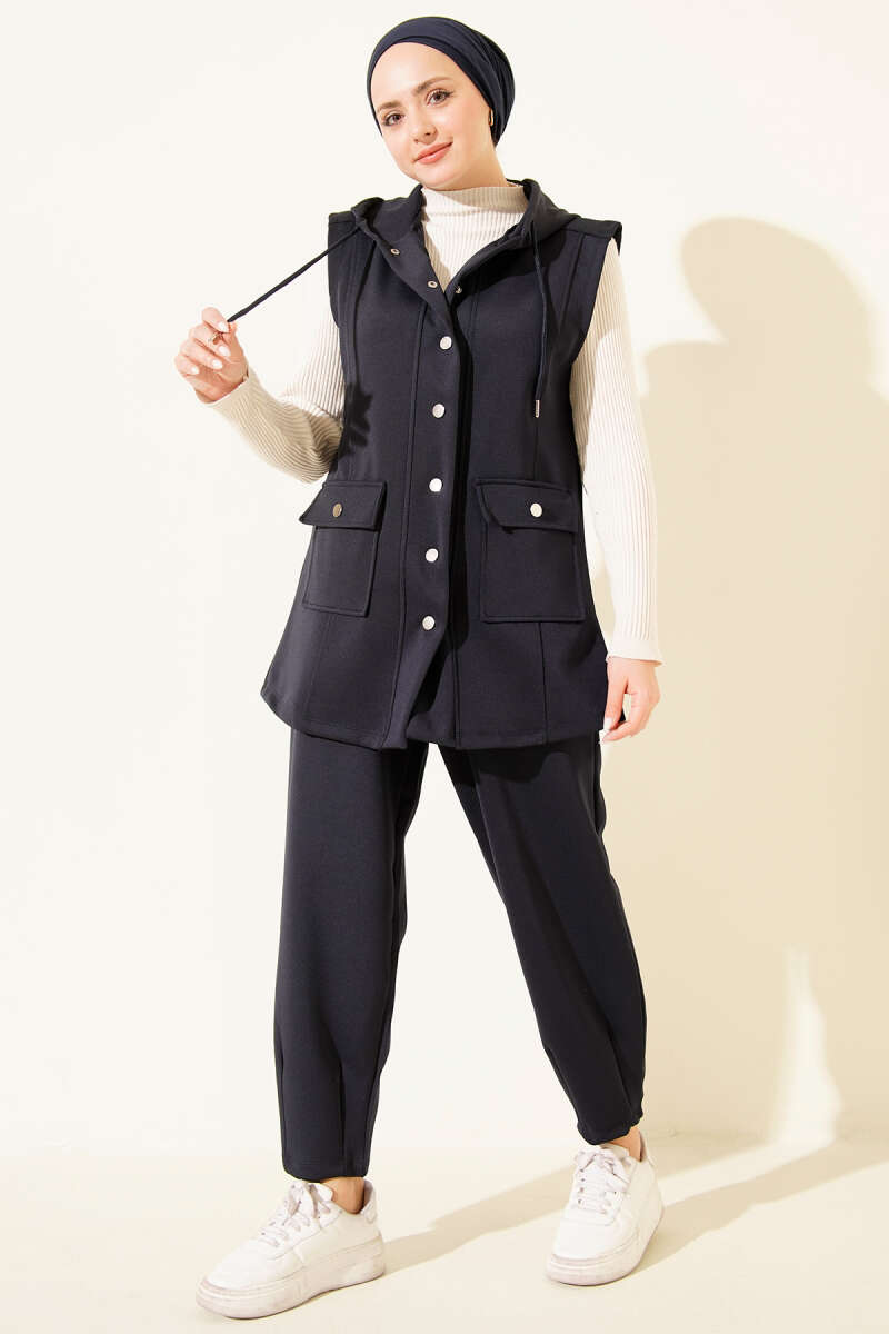 طقم سترة سكوبا مع غطاء رأس وزرارين باللون الأزرق البحري