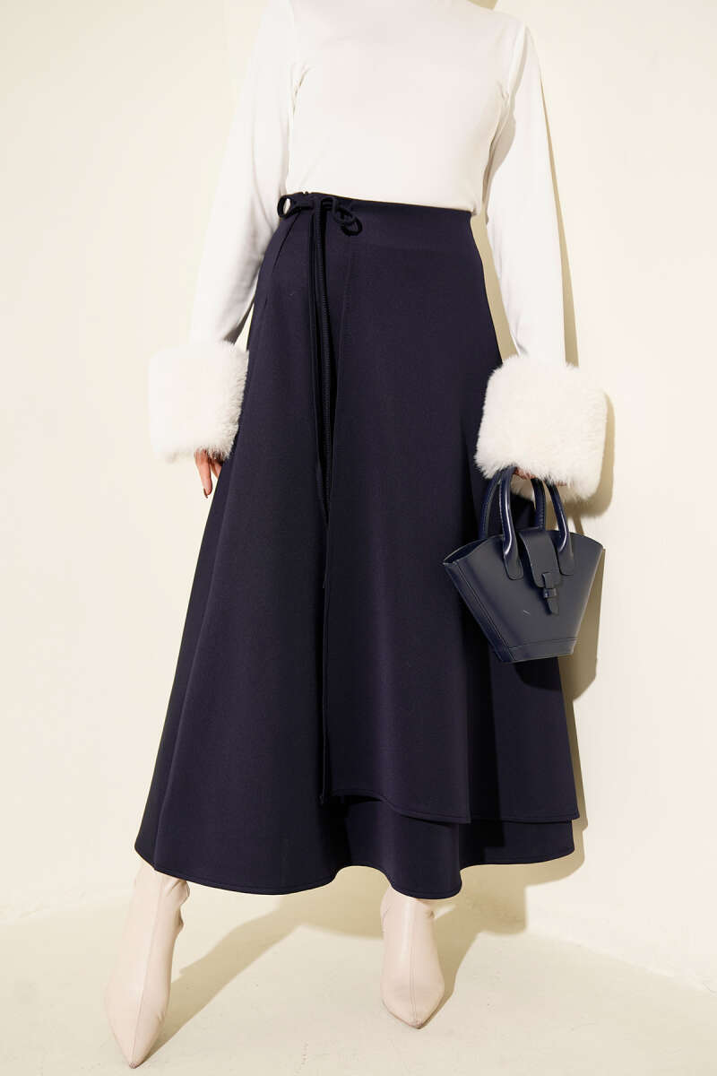 تنورة سكوبا زرقاء بحرية مزودة بحزام ربط