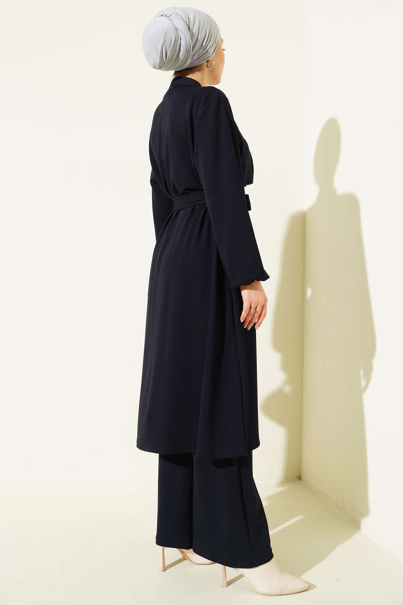 بدلة أيروبين من قطعتين مع كتاف وكارديجان طويل باللون النيلي