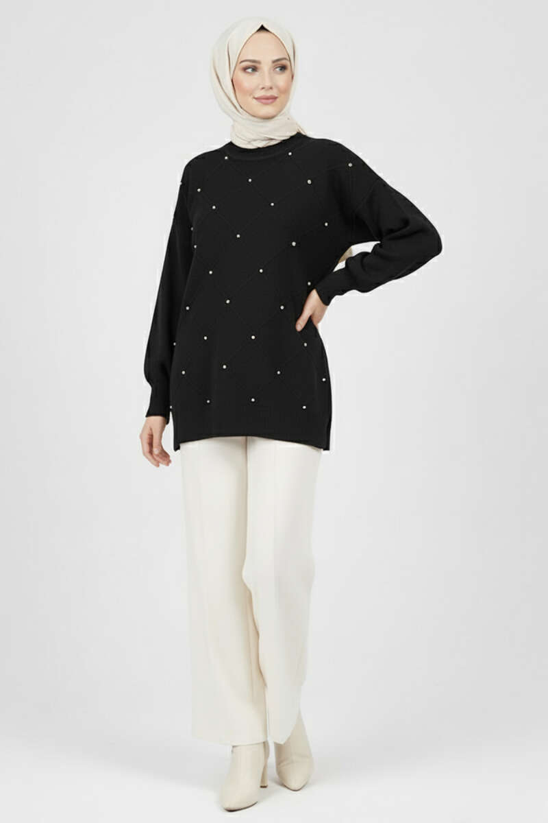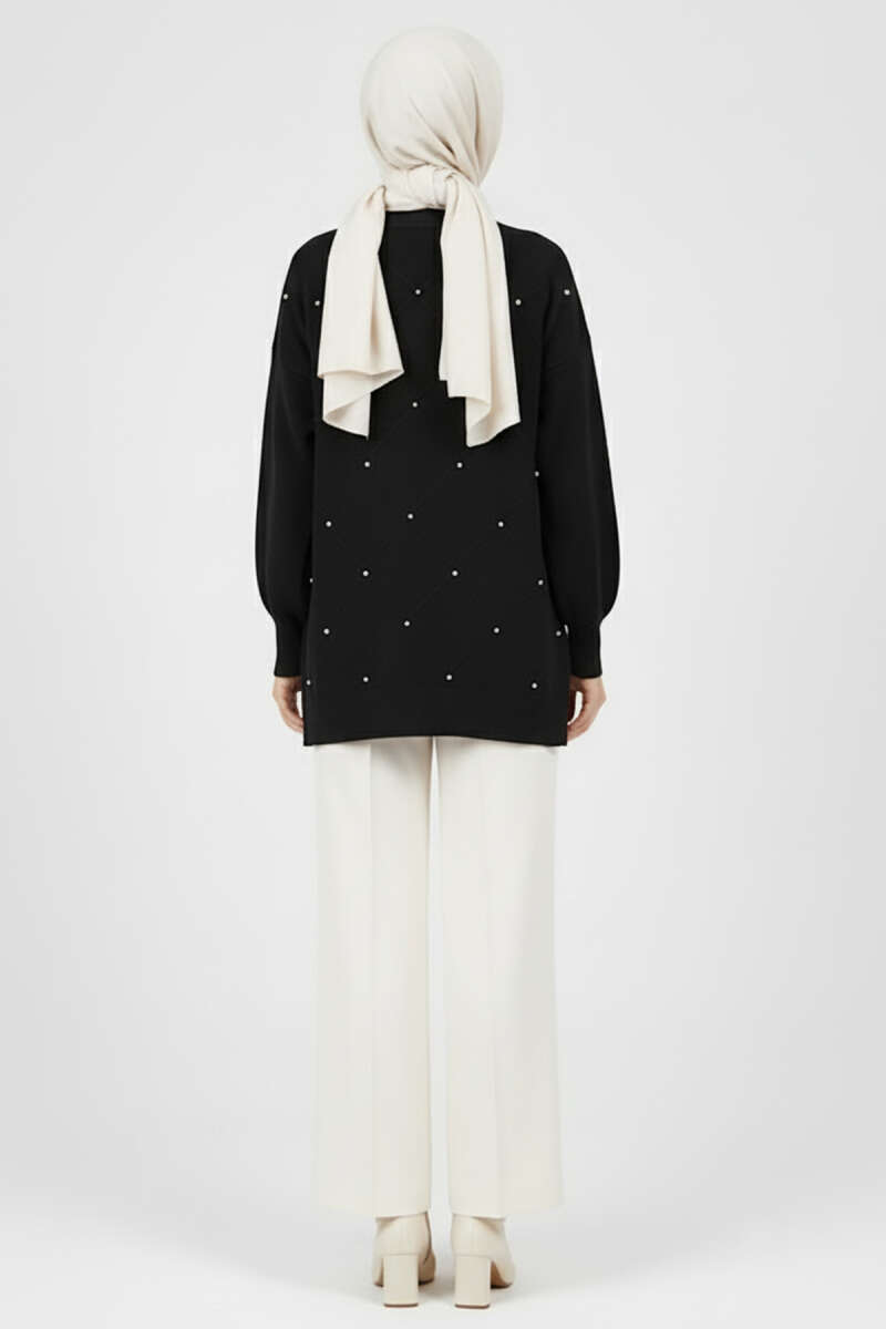 تونك مصنوع من الصوف مع حبات زينة سوداء