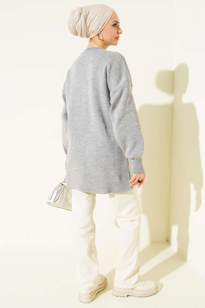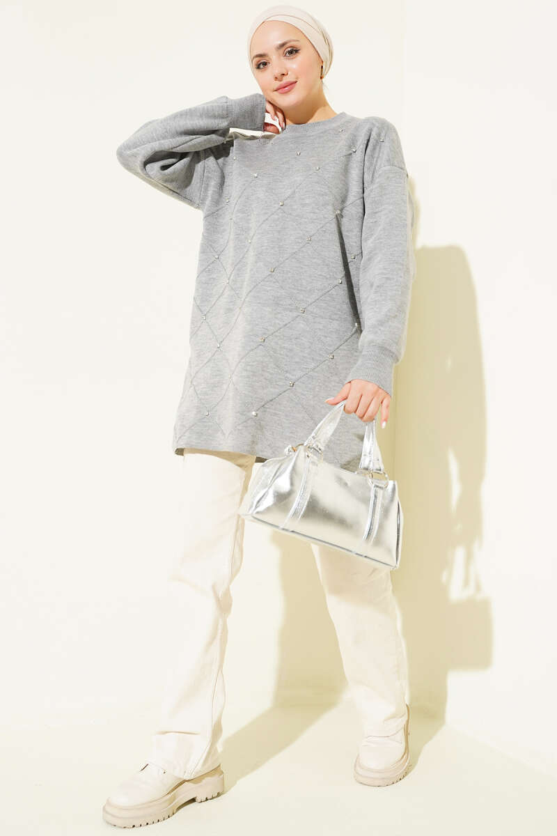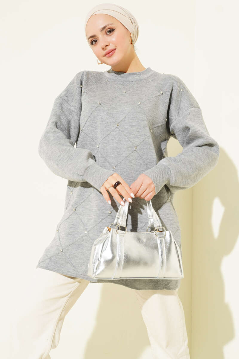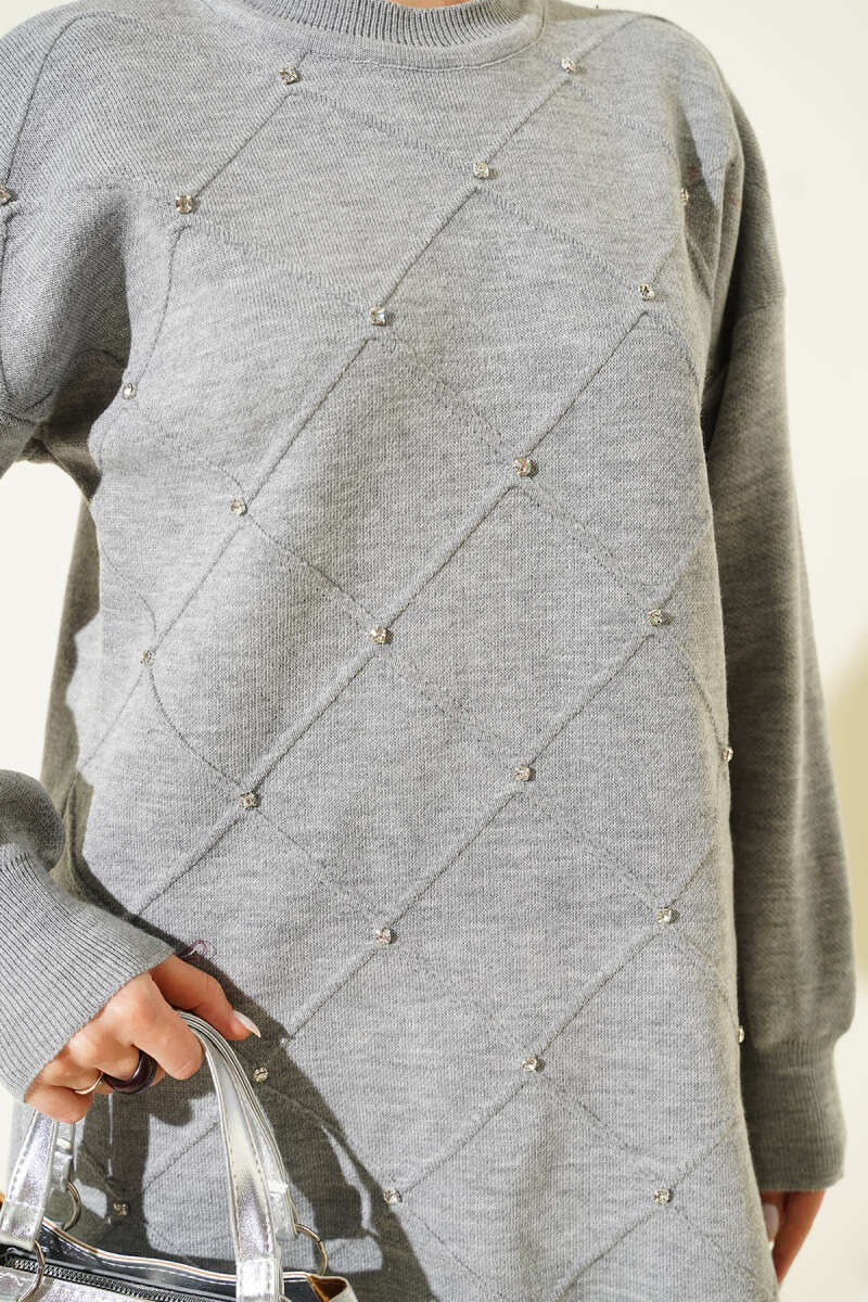 تونيك محاكاة مزين بالحجر باللون الرمادي