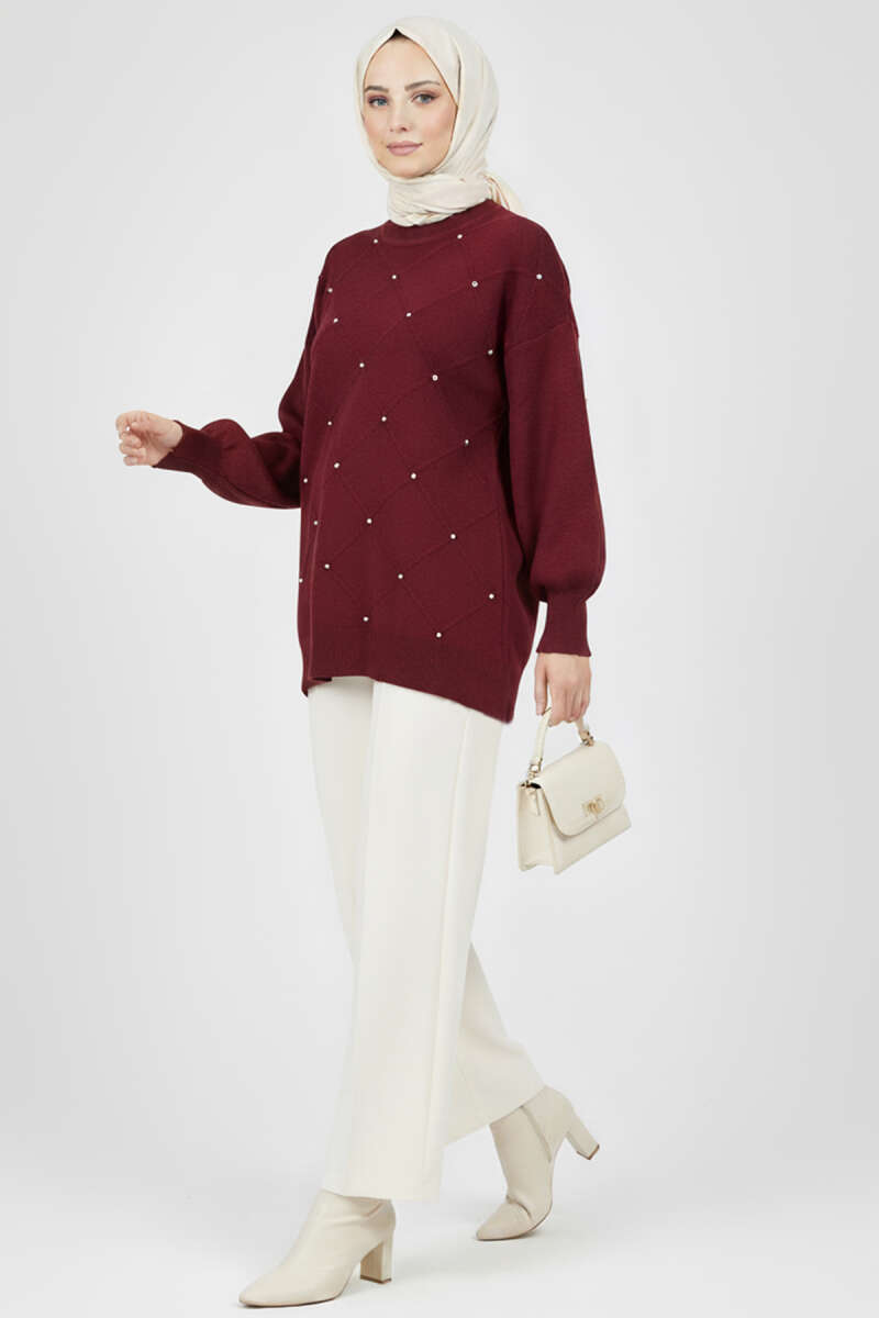 تونيك محبوك بالأحجار المرصعة بلون بورجوندي