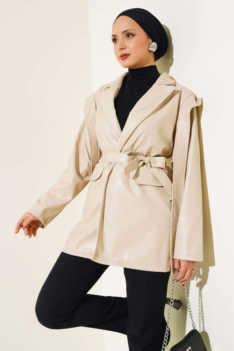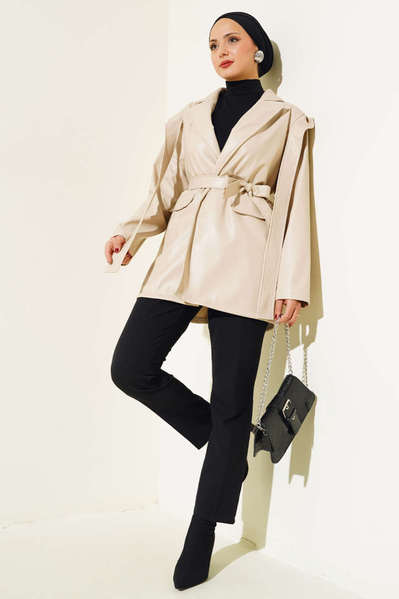 تونيك بلون اللاتيه مع وشاح على الكتف