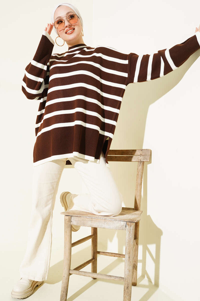 ك Sweatshirt مصبوغ ذو شق جانبي - بني