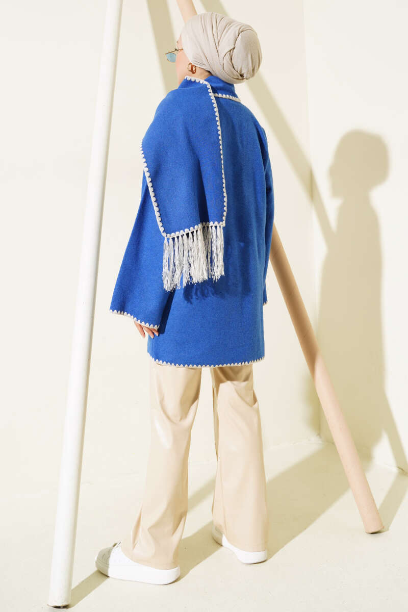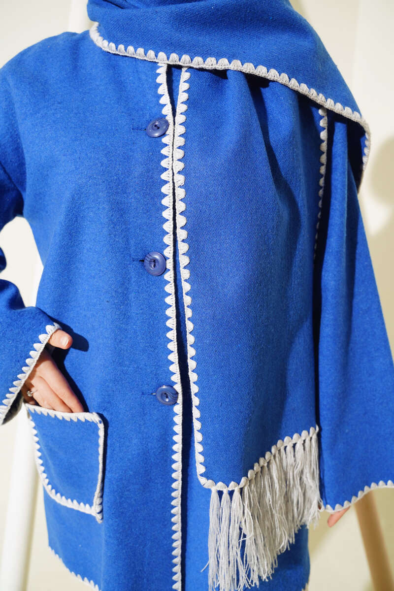 جاكيت مفصل مع وشاح - أزرق ملكي