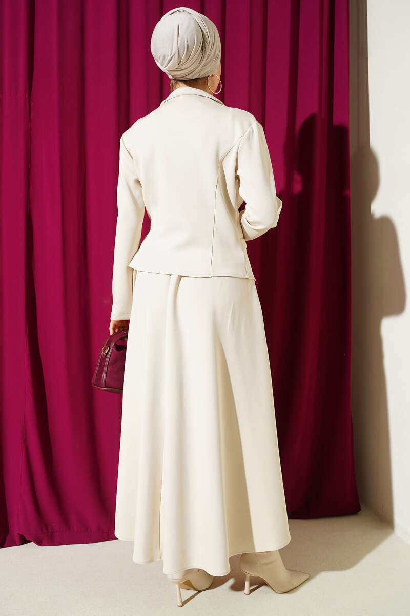 طقم من قطعتين مع تنورة سكوبا وأربطة أمامية - بيج