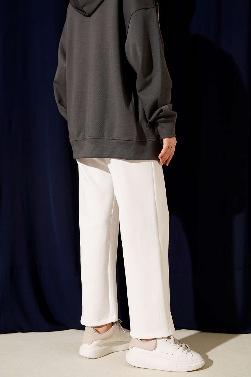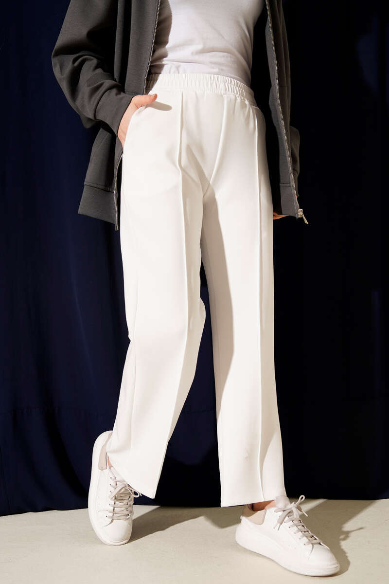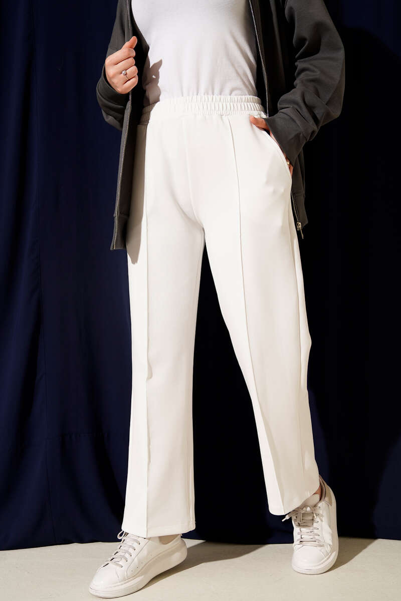 بنطال سكوبي عالي الخصر مع جيوب بيضاء