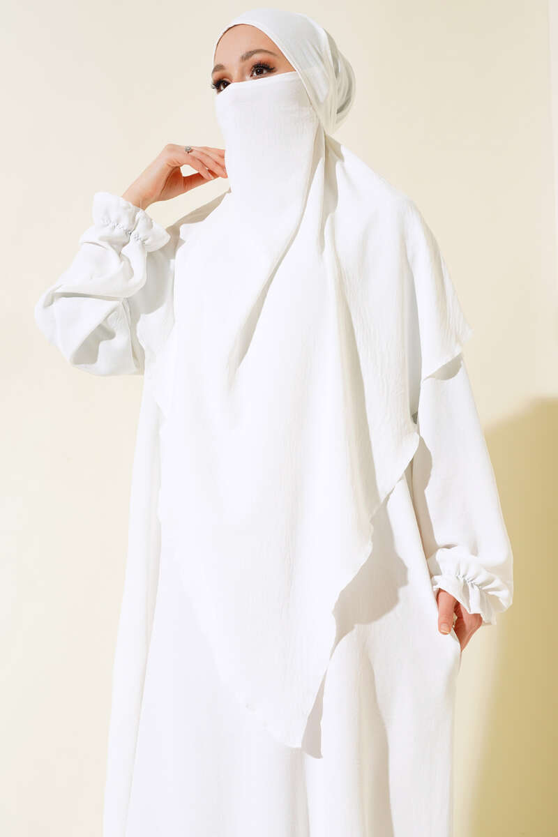 عباءة بيضاء واسعة بغطاء
