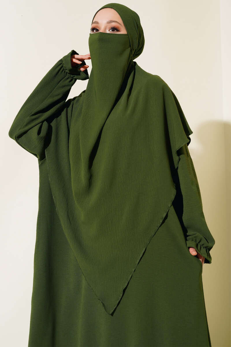 عباءة واسعة بحجاب بلون الكاكي