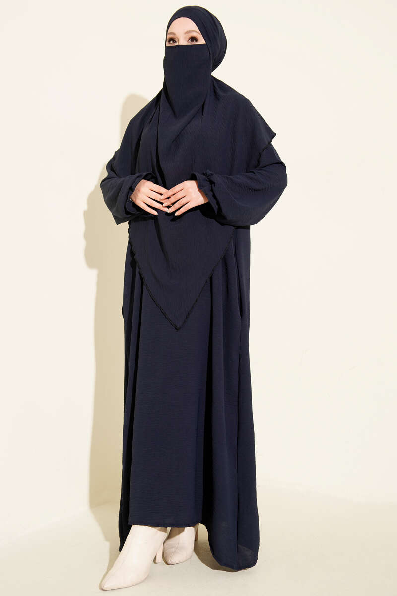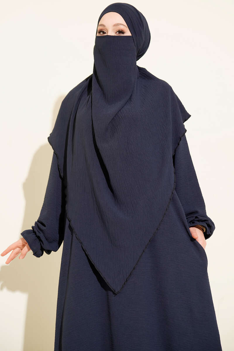عباءة واسعة مزودة بالحجاب باللون الأزرق navy