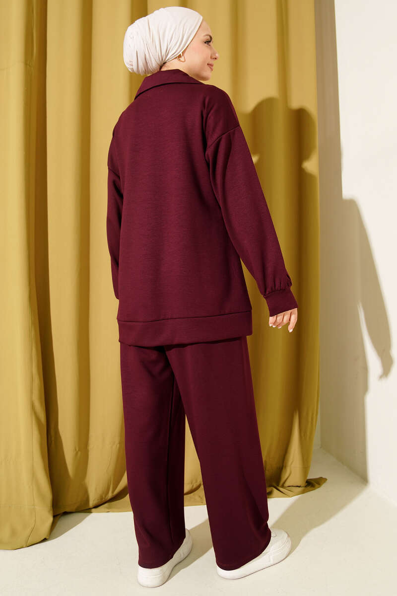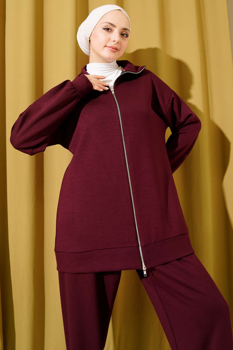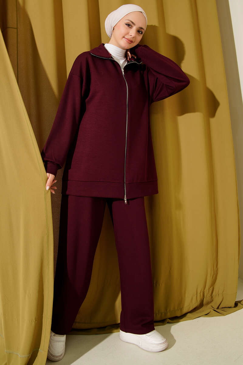 بدلة أيروبين من قطعتين مع كتاف وكارديجان طويل، لون وردي باهت
