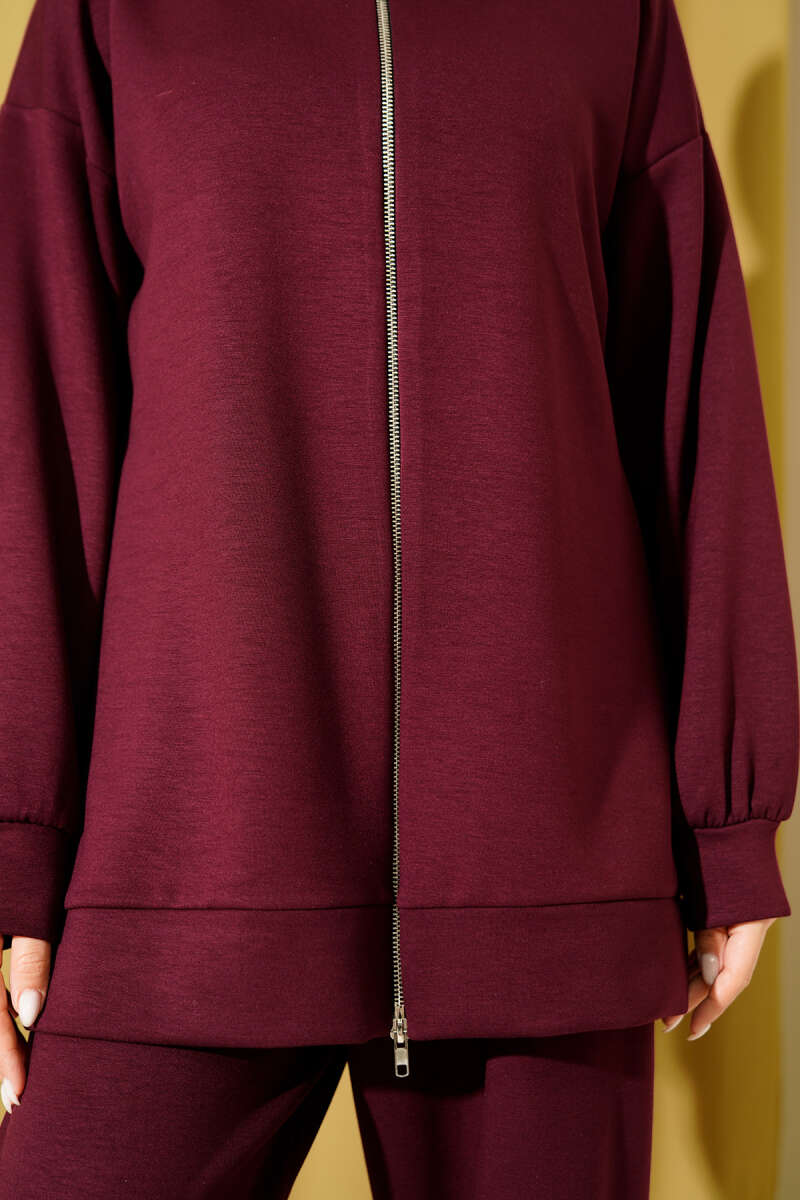 بدلة أيروبين من قطعتين مع أكتاف وكارديجان طويل باللون الرمادي