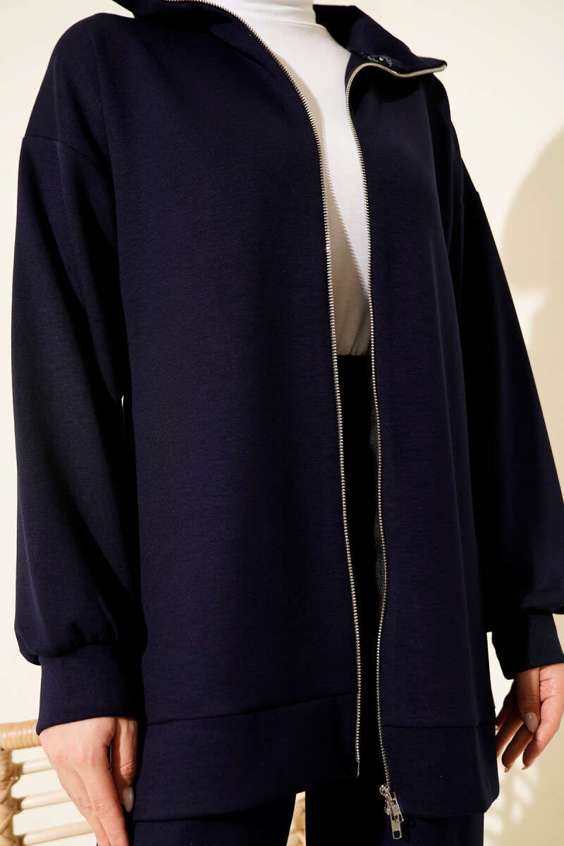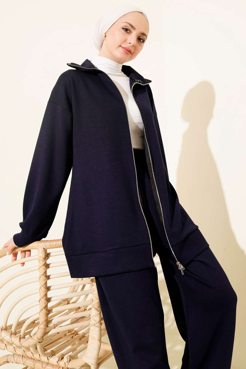 بدلة أيروبين من قطعتين مع كتاف وكارديجان طويل باللون النيلي