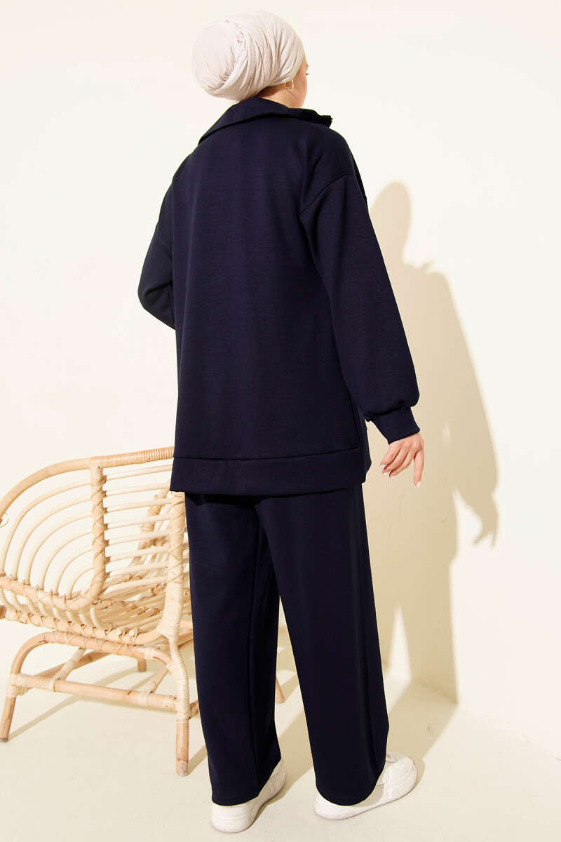 طقم أساسي مزدوج بأزرار في اللون الأزرق الداكن
