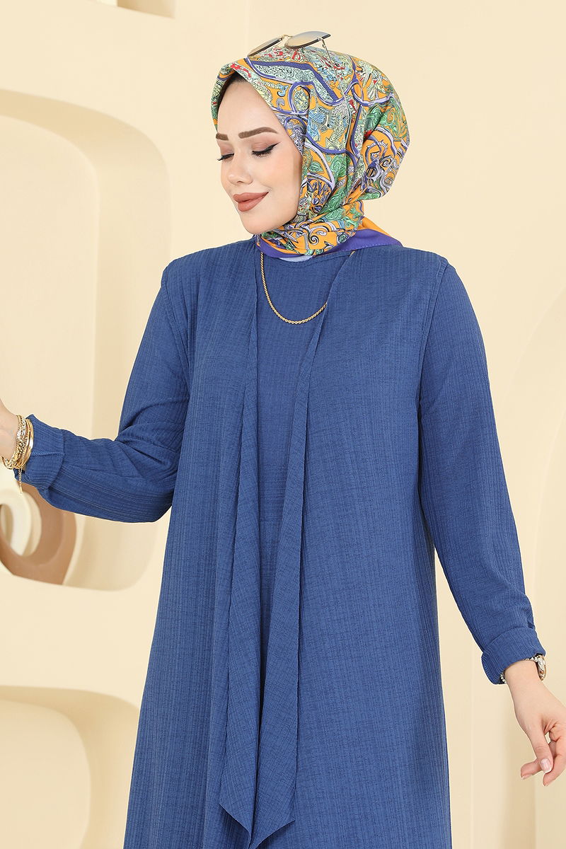 Asymmetrical Vest Knit Set Indigo