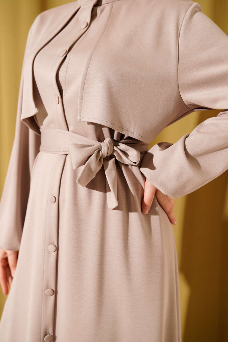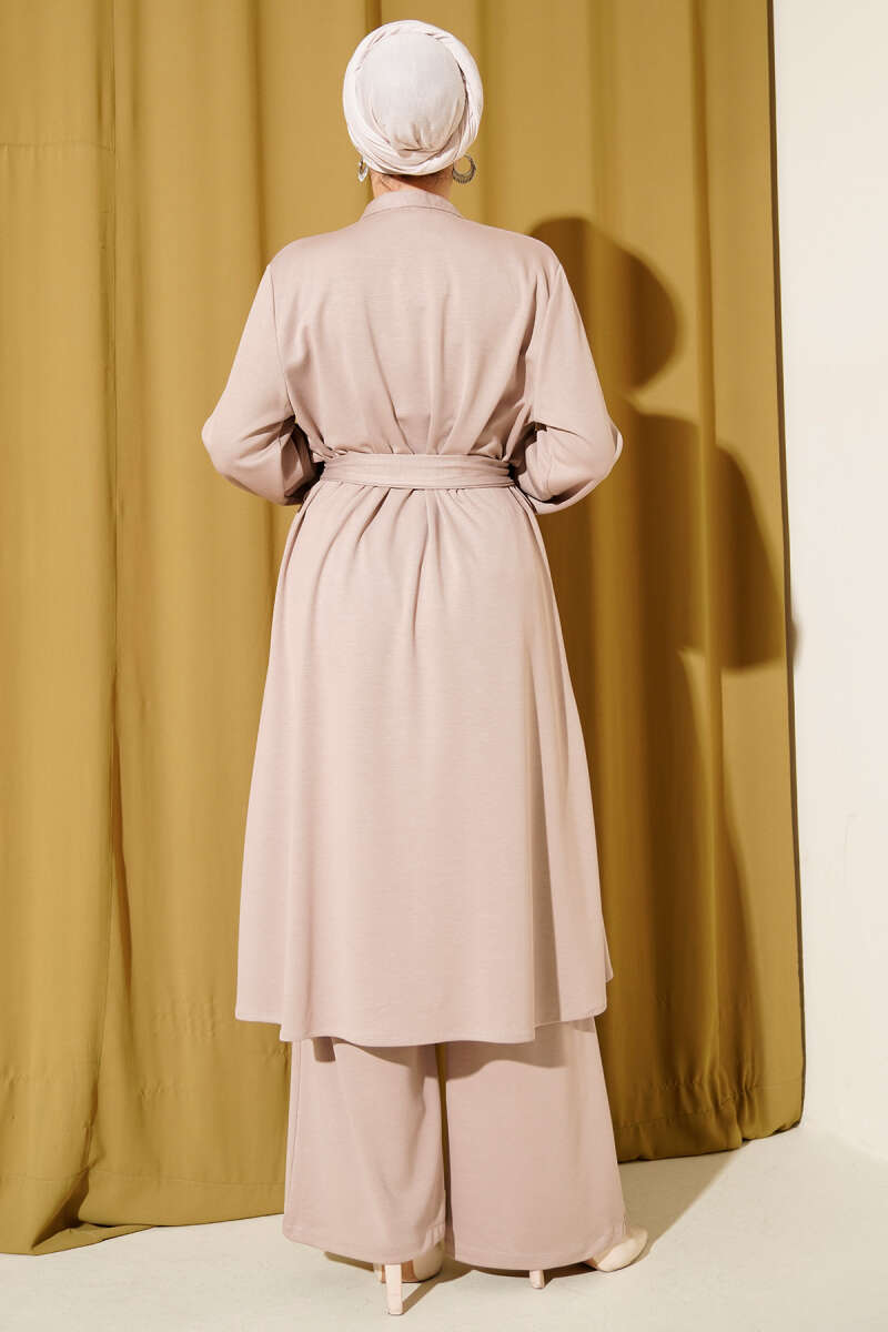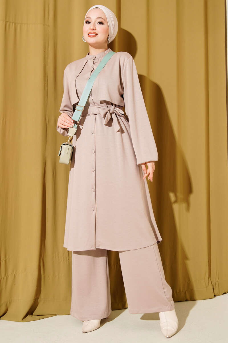Ruffled Rope Belted Tunic Two Piece Set Stone