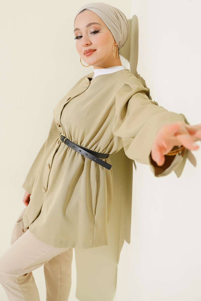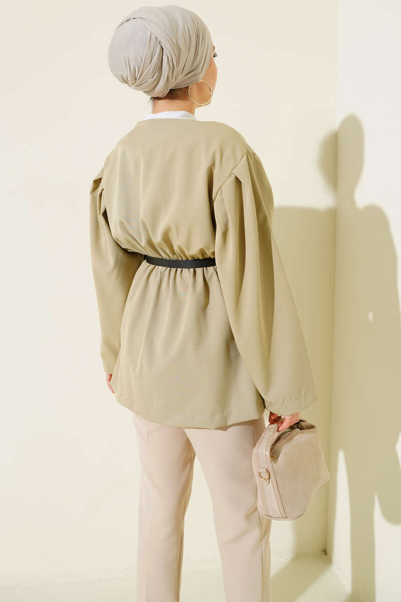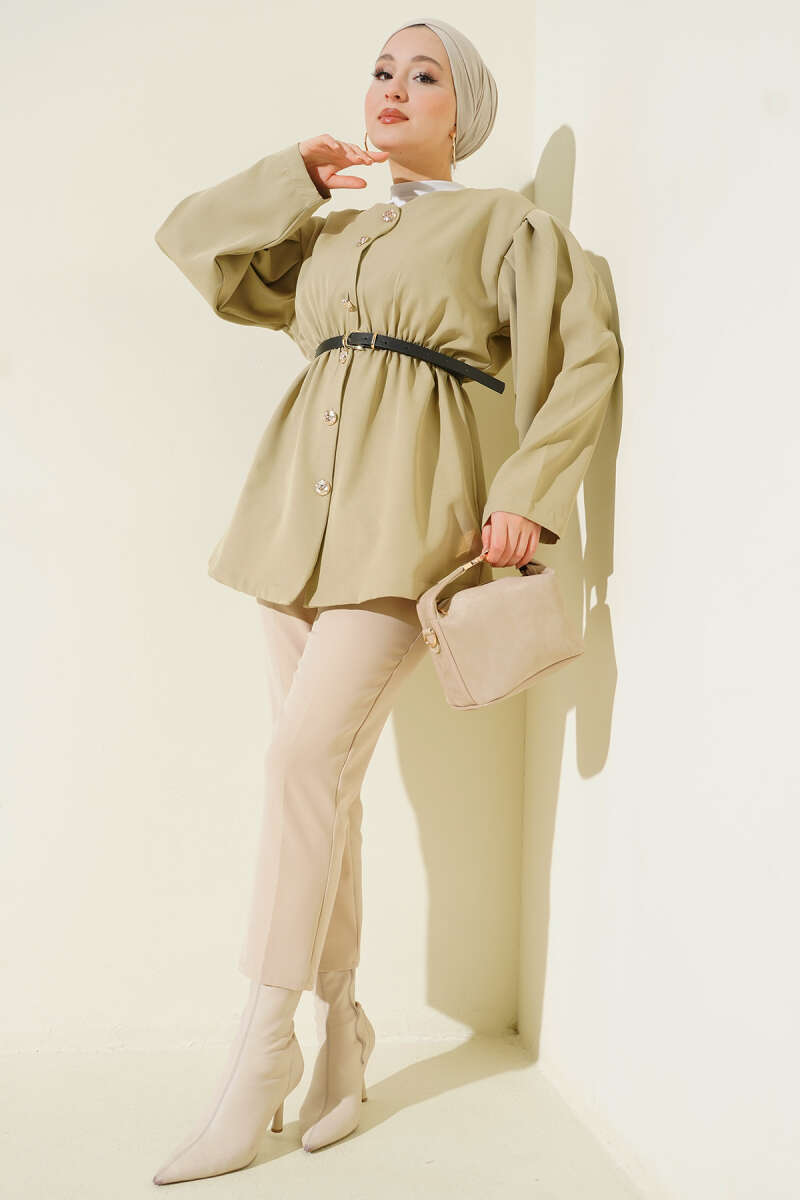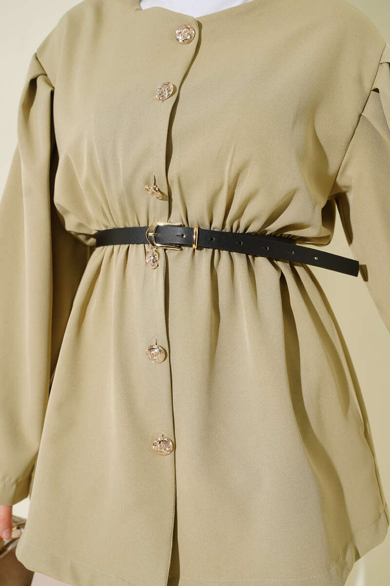 Ruffled Rope Belted Tunic Two Piece Set Stone