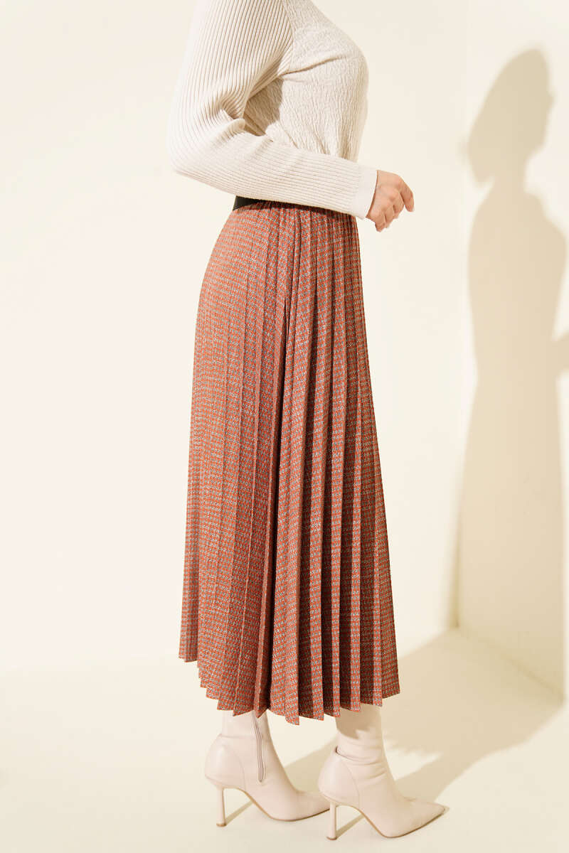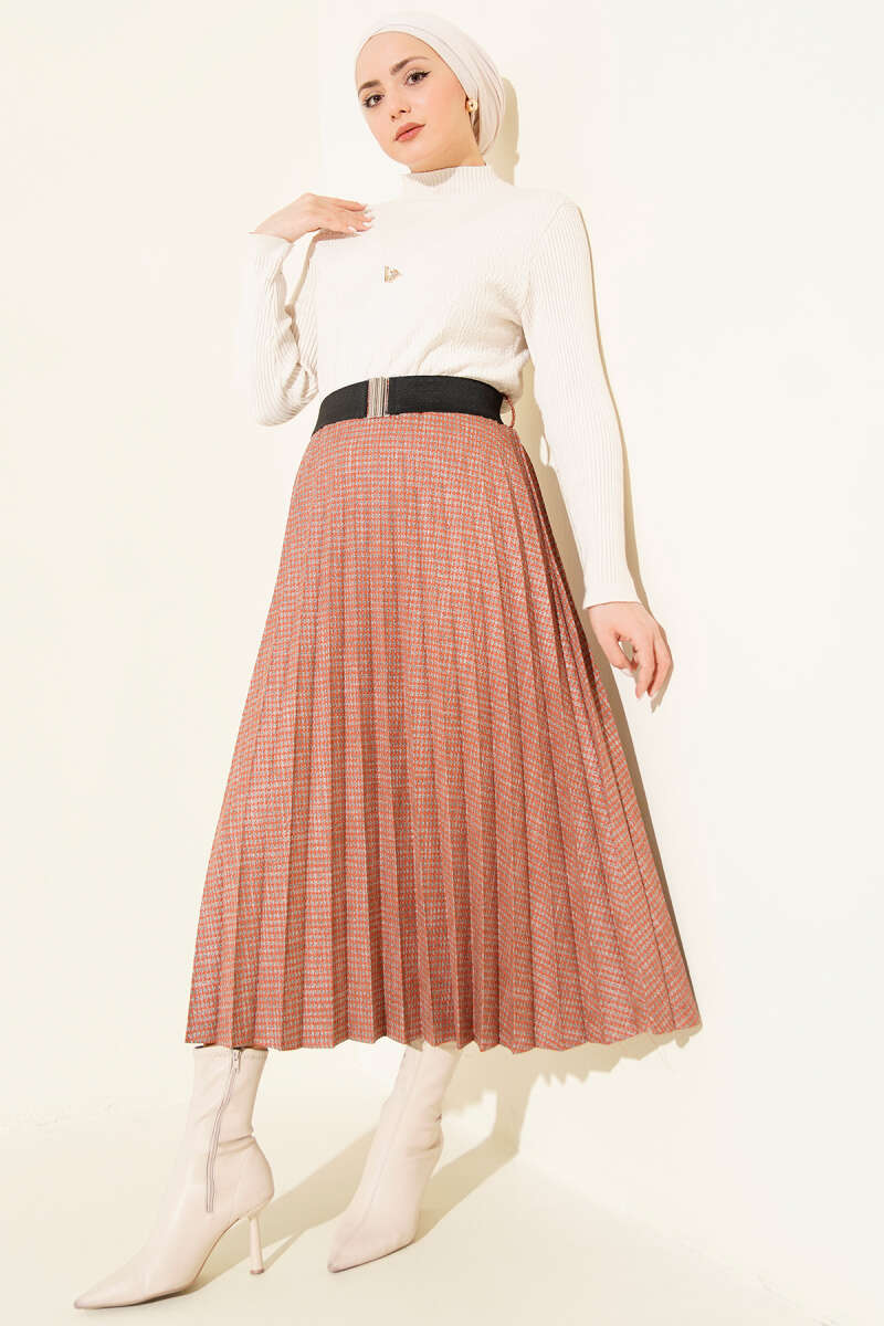 Belted Pleated Skirt in Terracotta