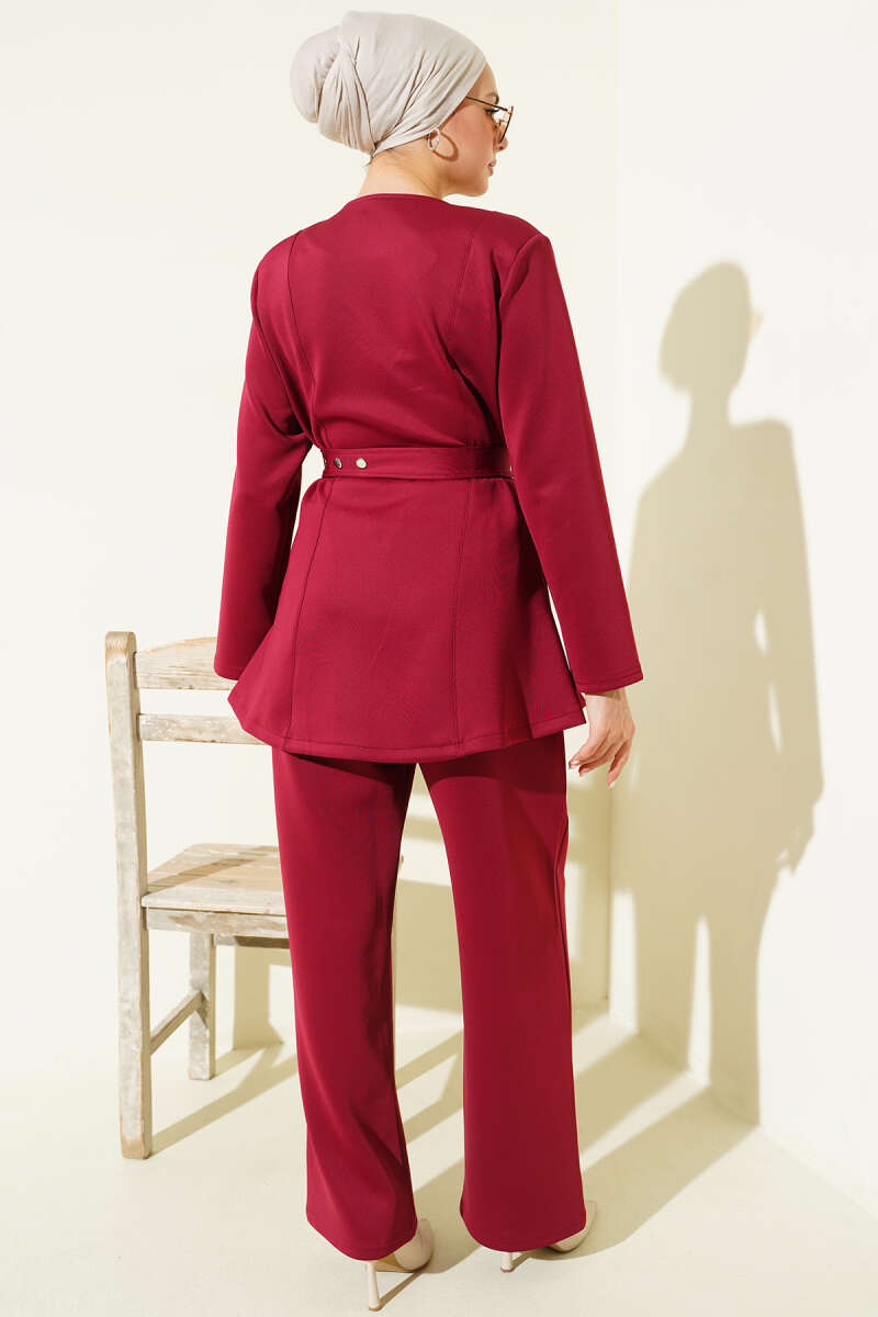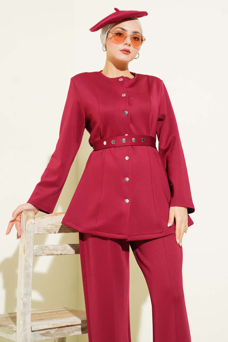 Ayrobin Two Piece Suit with Shoulder Epaulets and Long Cardigan, Dusty Rose